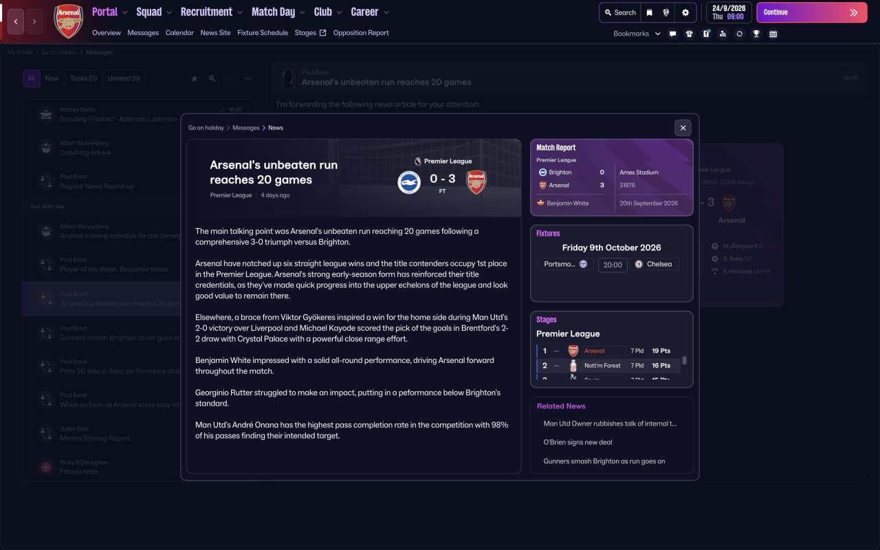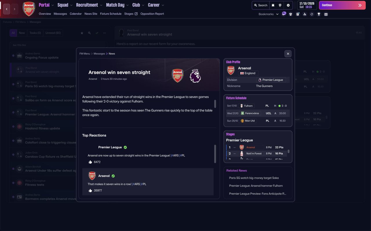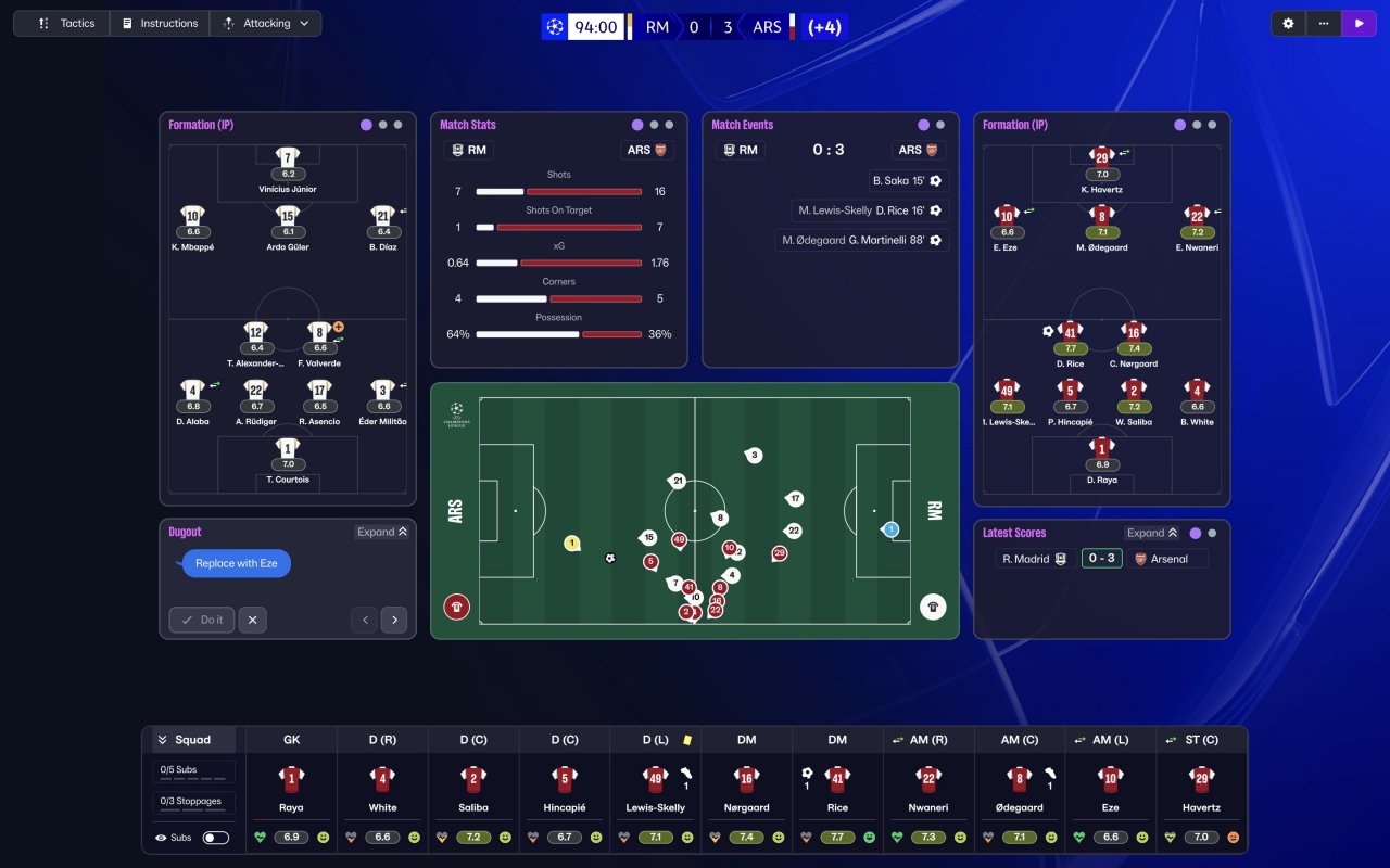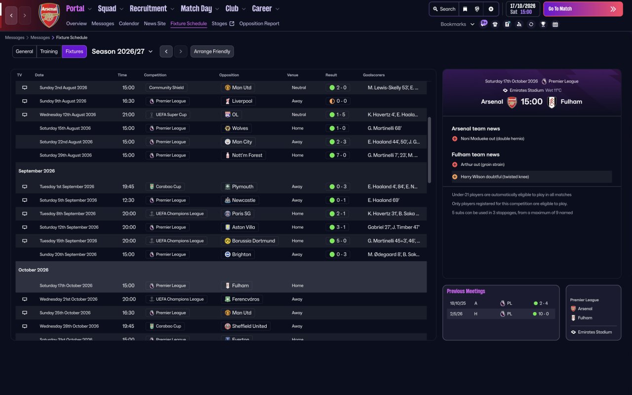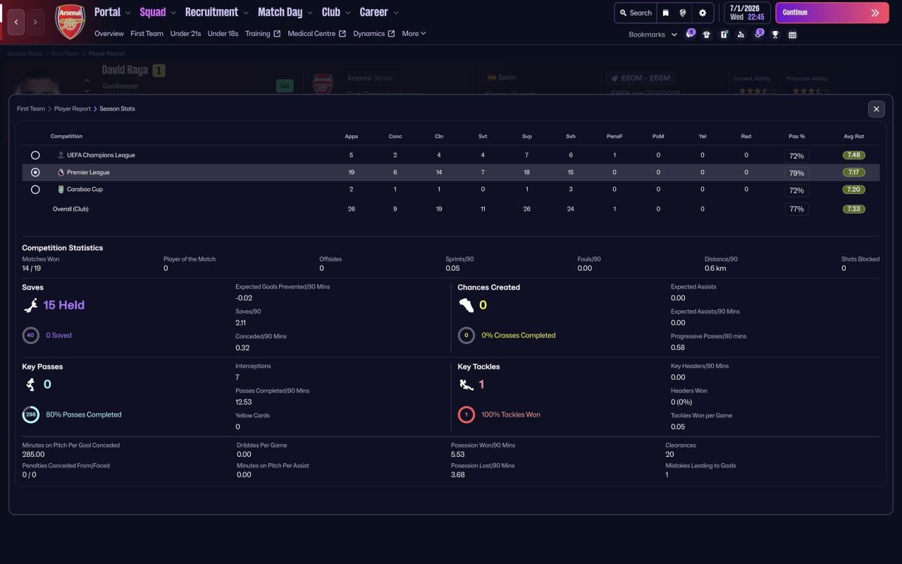 Best tactic in FM 26 so far, won the EPL, Champions league and Carabao Cup first season with Arsenal, 30 matches undefeated at a stretch in all competitions and 34 clean sheets in a season.