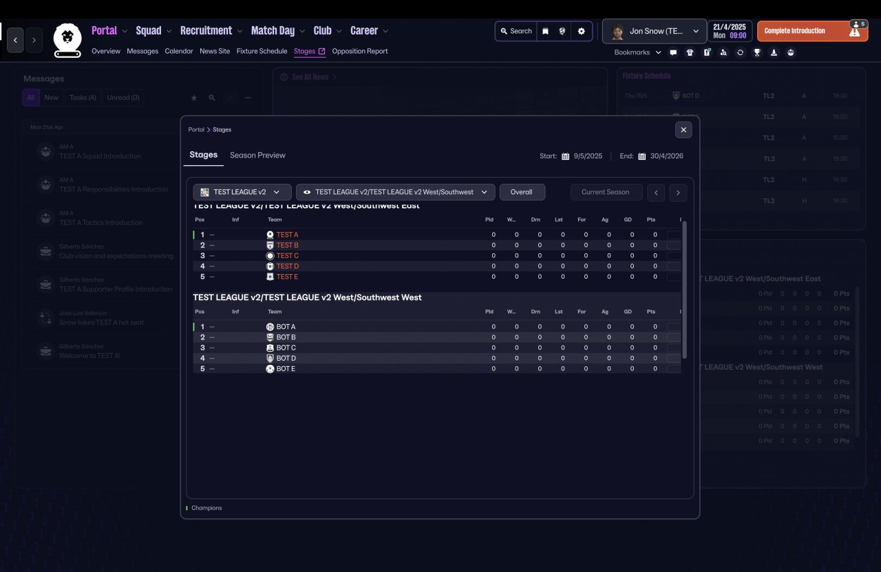 - Inter-Group Fixtures: This is the main experiment. Teams are supposed to ONLY play matches against teams from the other group. (e.g., TEST teams never play each other).