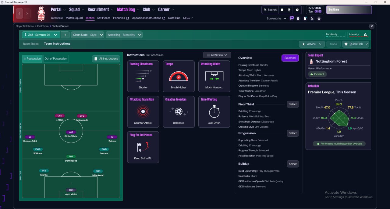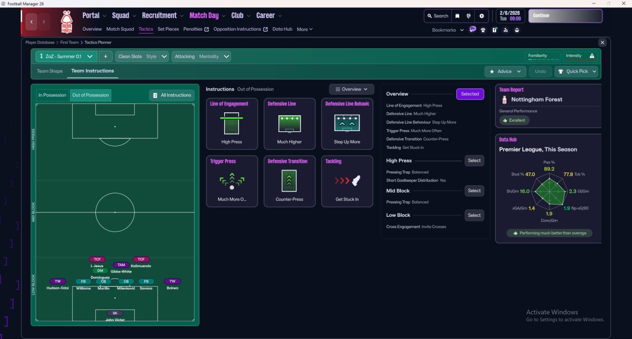 Just the standard aggressive 4132, based on Blue, which was my tactic of choice for FM22. Team instructions are simply Tackle Harder for all positions. Let me know how it performs for you.