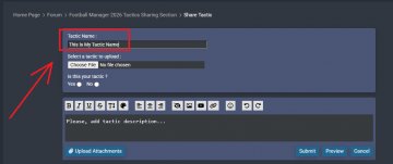 This means when you upload your tactic for our testing then you should name it EXACTLY the same as you saved it in the game otherwise it could not be imported and tested.