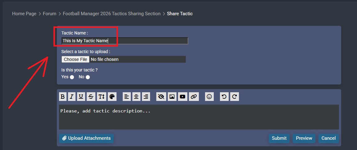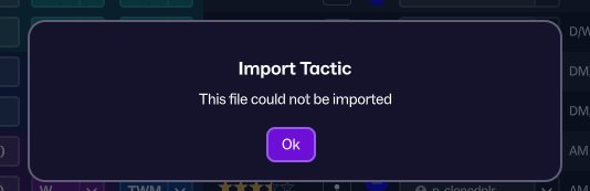 This means when you upload your tactic for our testing then you should name it EXACTLY the same as you saved it in the game otherwise it could not be imported and tested.