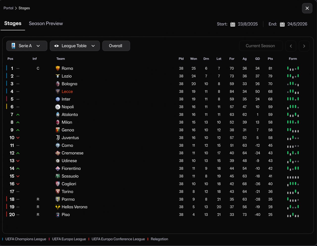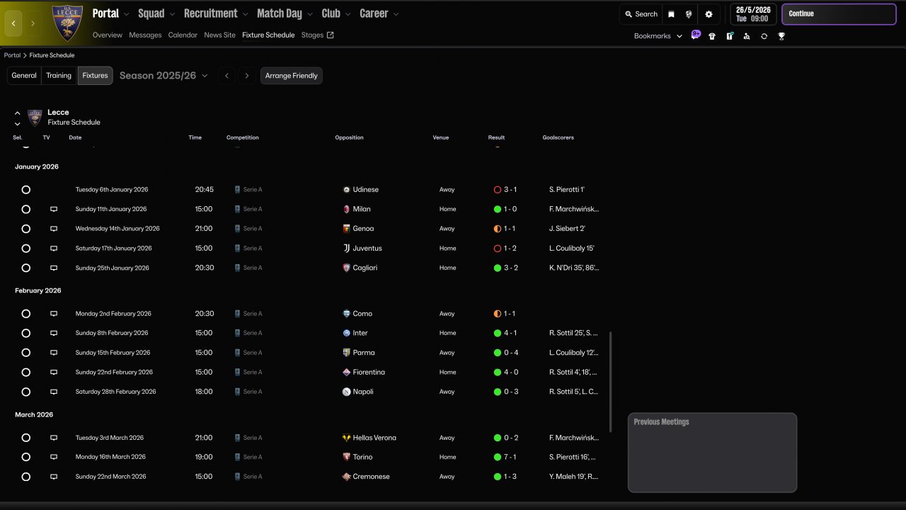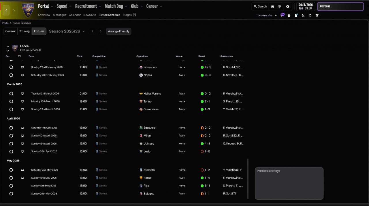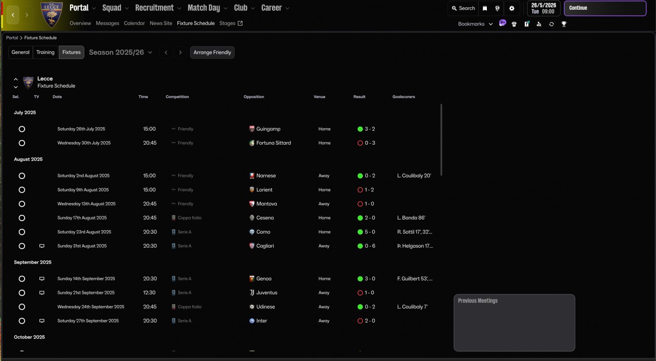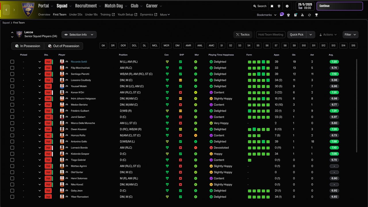 A strikerless 433 tested with Lecce (4th placed) on holiday