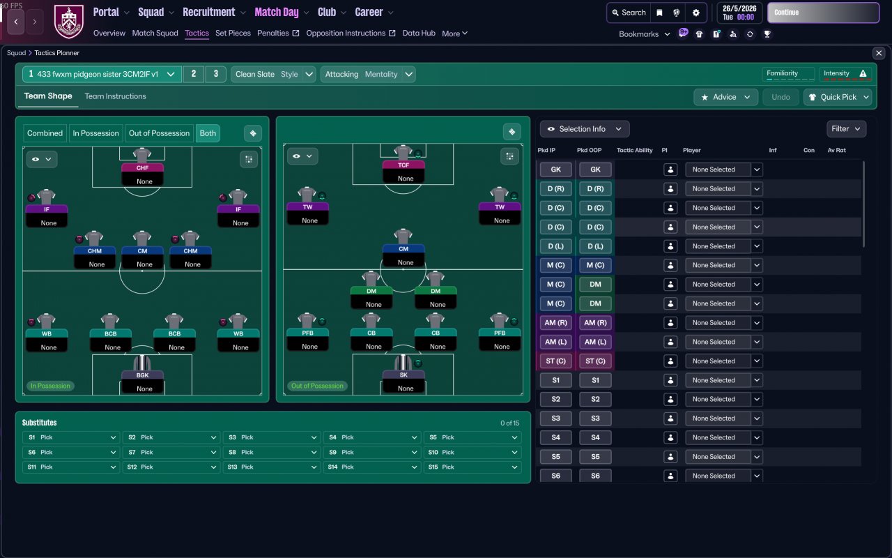 433 with 3CM and 2IFs. Performs better in match than on holiday, worth a try