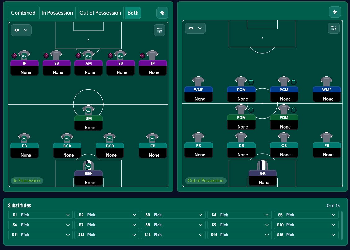 I changed several roles and instructions to suit my own 4150 idea, and the results haven’t been bad so far. No set-piece routines were used — it’s purely the tactic itself, tested through holiday simulation.