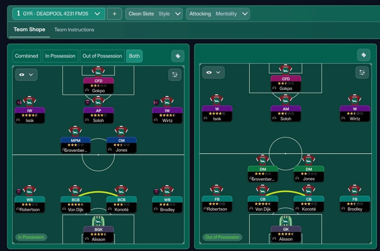 GYR's 4231 DEADPOOL FM26 TACTIC For Elite and Lower Teams