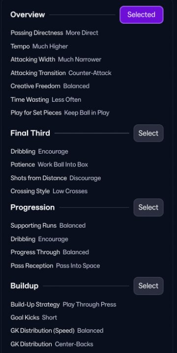 A defensive 523 tactic. I won the league championship by conceding 21 goals.