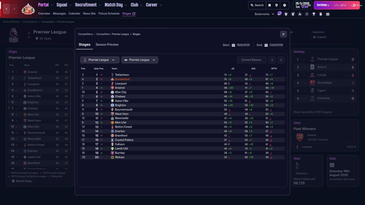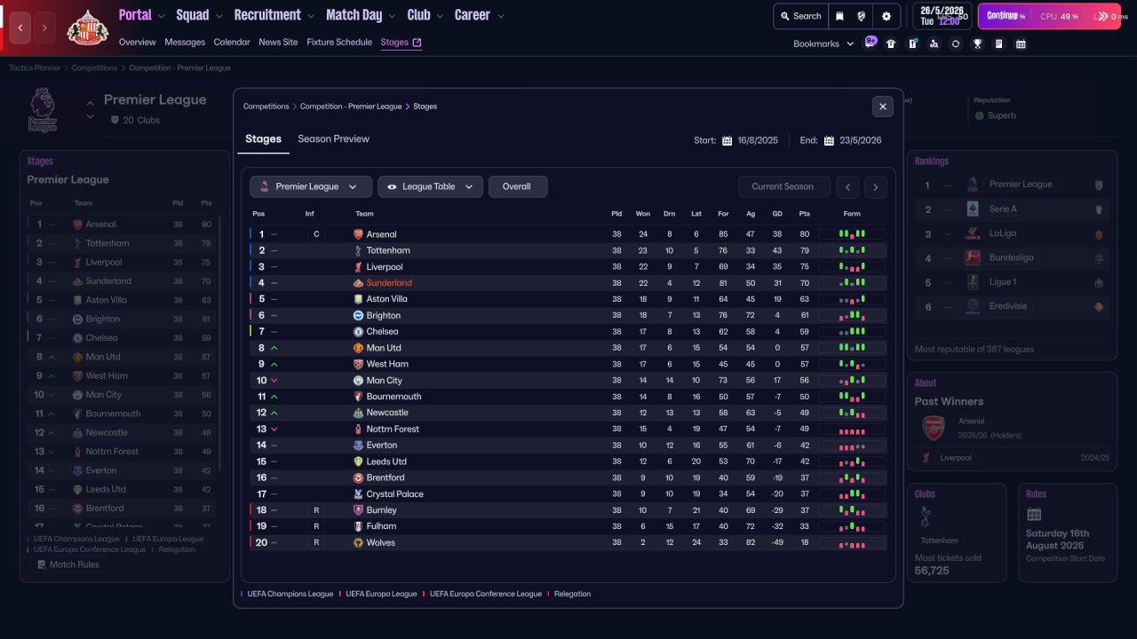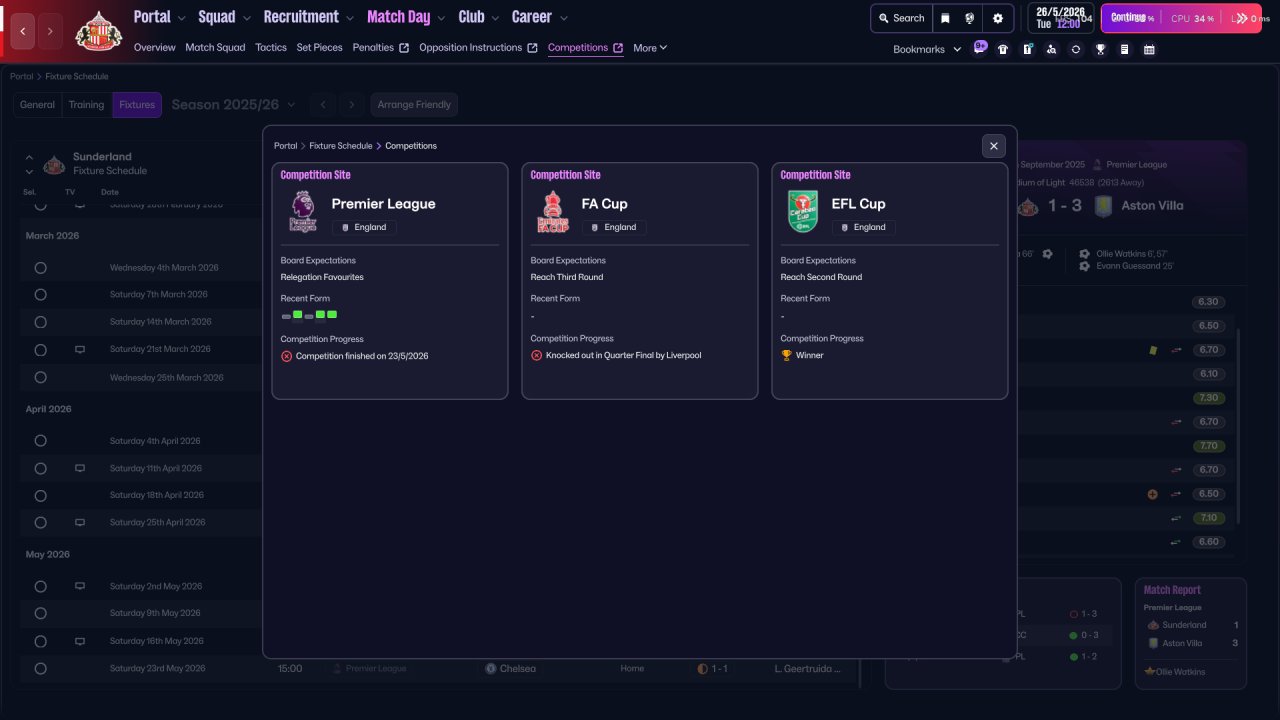 4 place in the Premier League with Sunderland while holidaying and also picking up a carabao cup trophy.