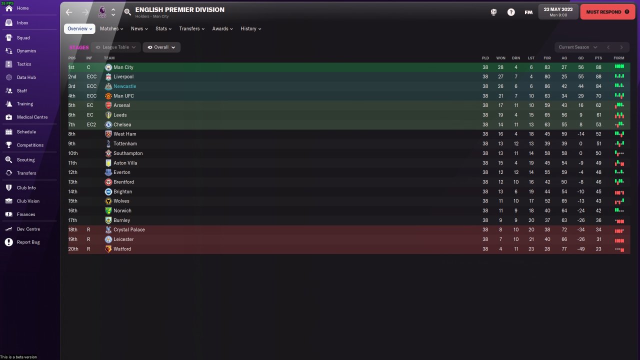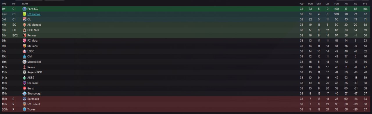 So at the end of the year my poor team is at the first position
