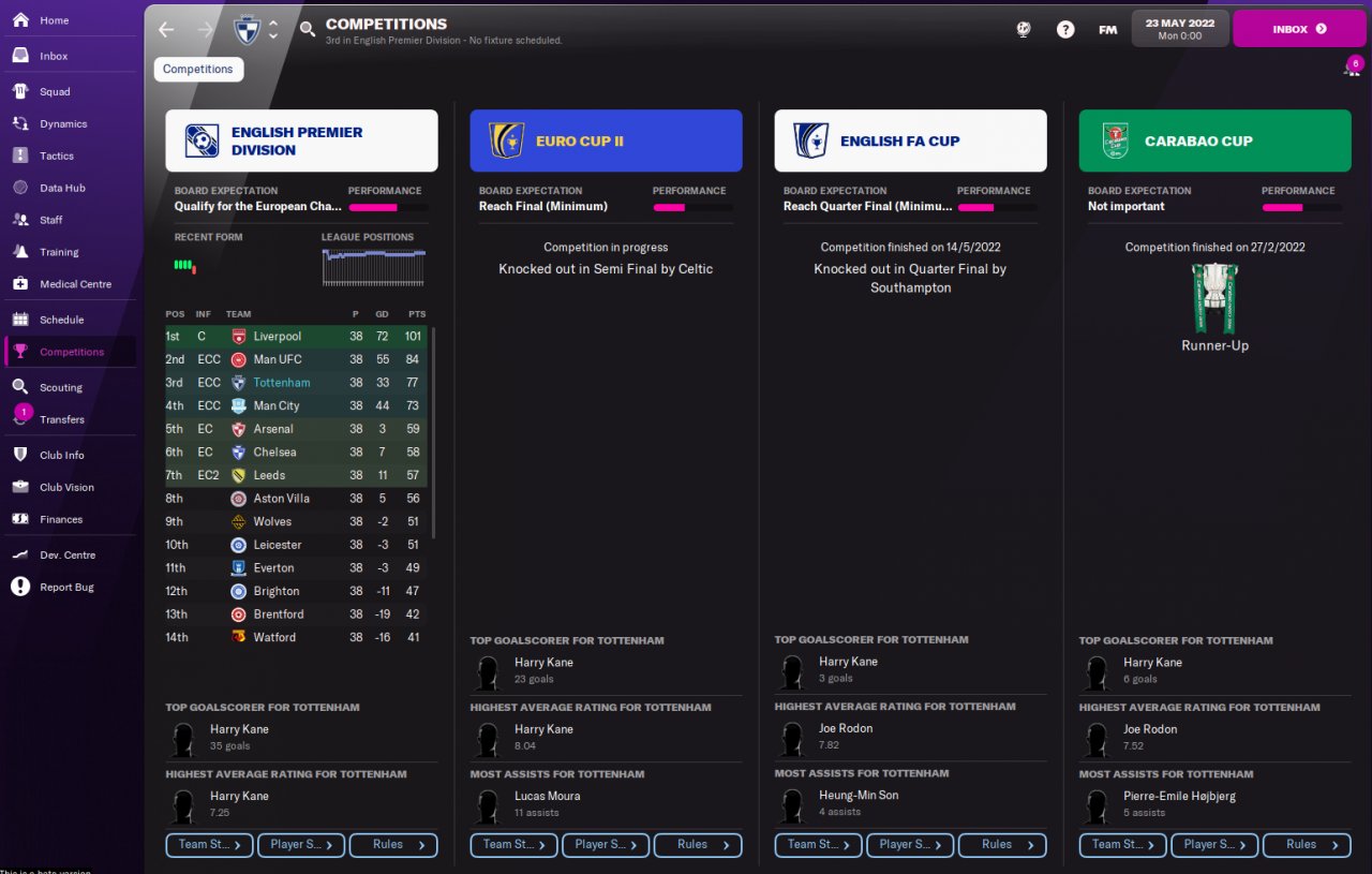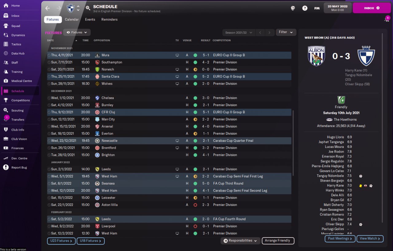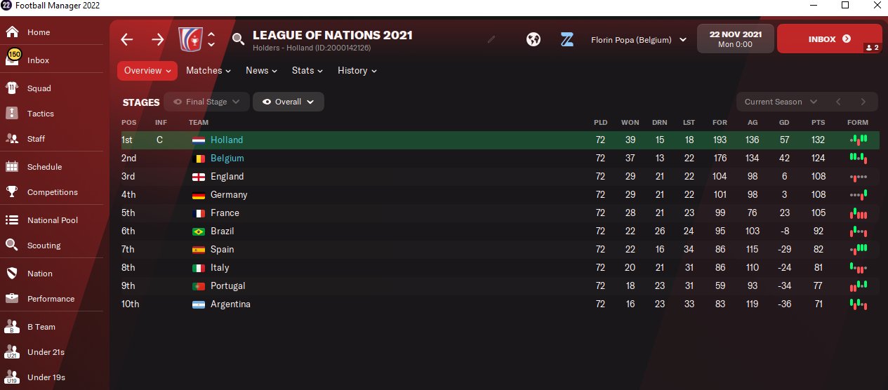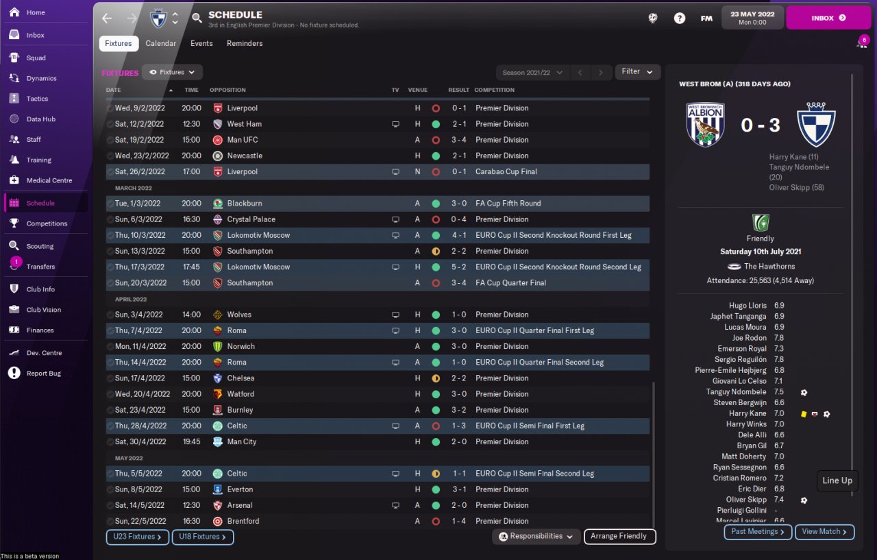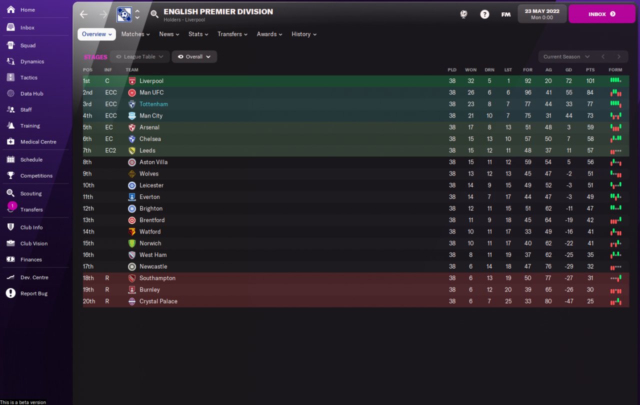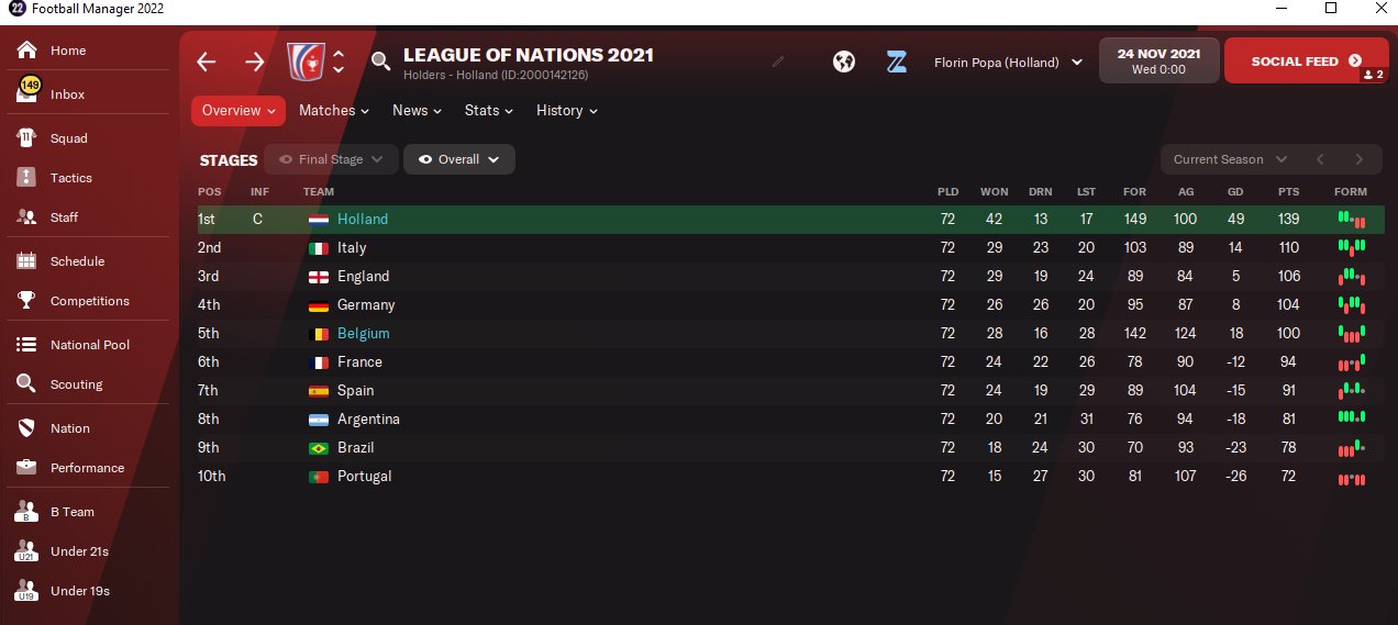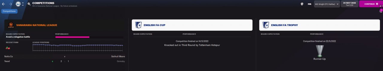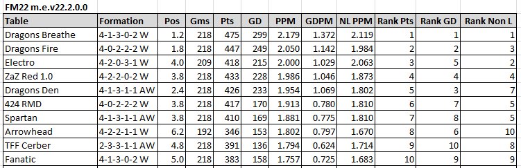 I have adapted this tactic from my FM21 version and it looks to go ok. As with the TFF one I previously uploaded I tested this with 3 lower league sides that were all listed as having Board expectations of fight hard against relegation. The results were a little better than the TFF one with all sides finishing in the top 4.