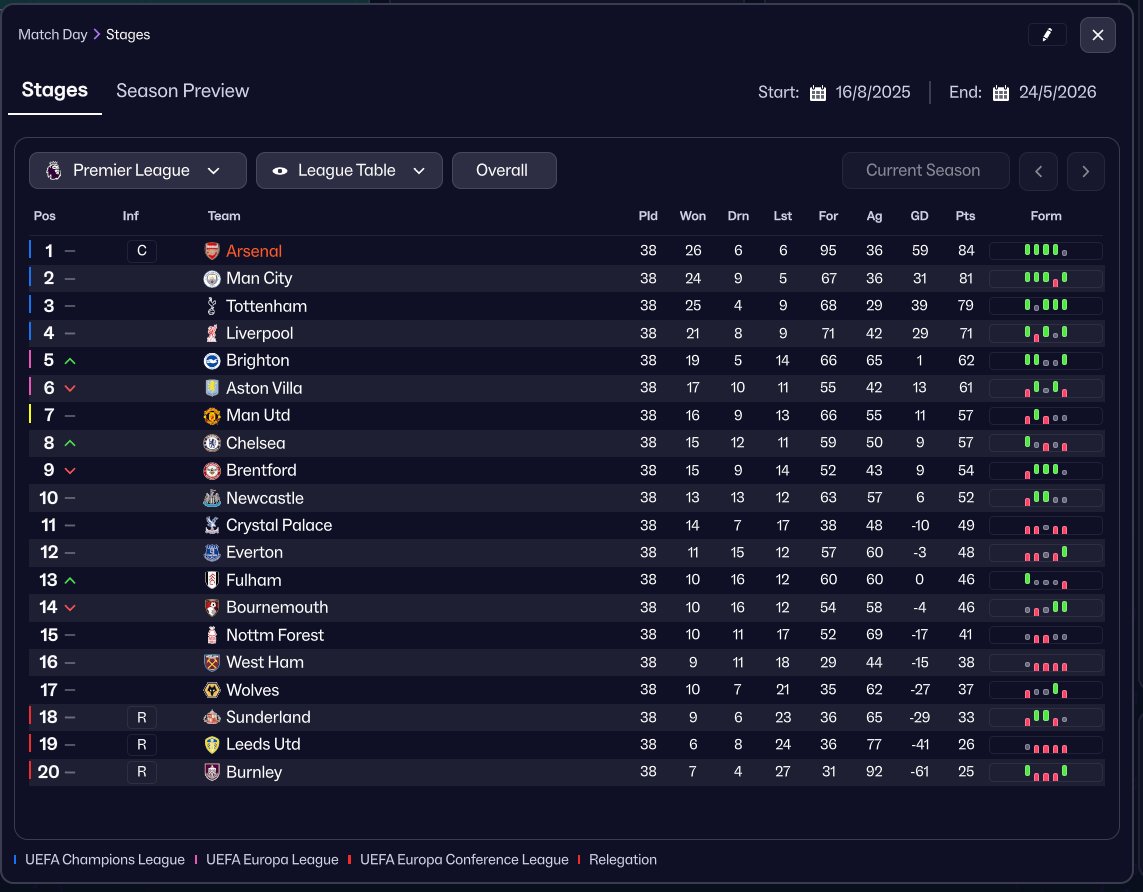 PTS GD GF GA PLD
