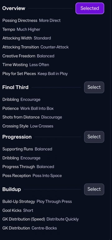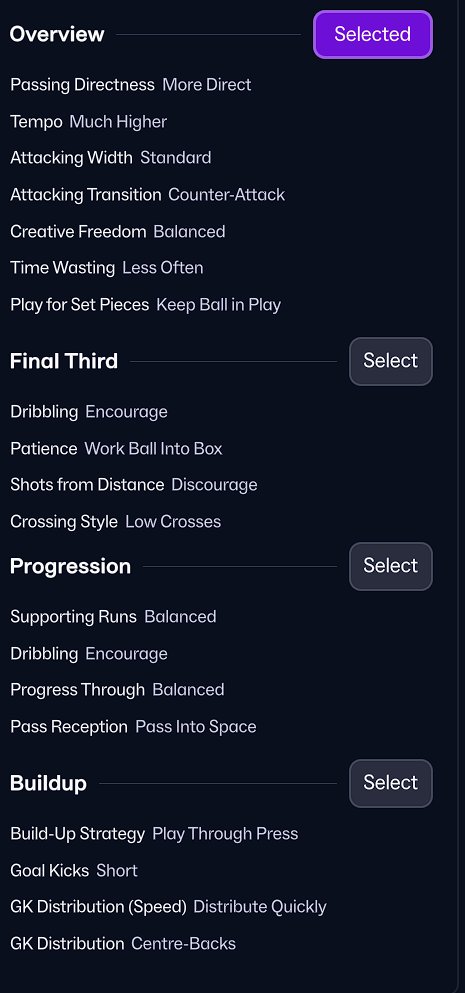 Updated version of the last tactic I posted on the forum, this is a more balanced, refined version. With TI's and PIs altered as well. Gave me really good results on my test save, as well as my personal save that I play on. Inspired by the current meta, with some alterations of my own.