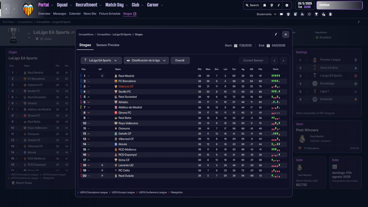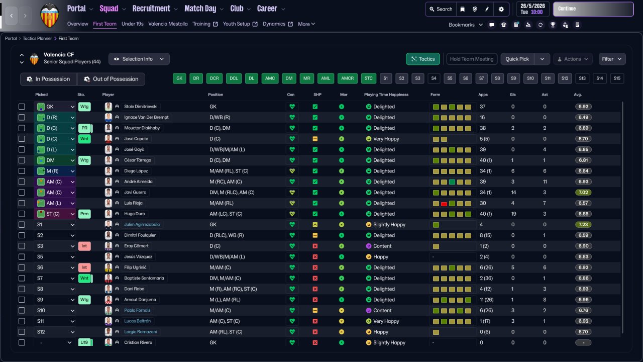 I tried to replicate how Hector Cuper's Valencia played during the season 1999/2000. A wonderfull team with Cañizares as goalkeeper; Angloma, Pellegrino, Djukić, and Carboni at defense; Farinós, Mendieta, Kily González and Gerard at midfield, with Claudio López and Angulo as strikers.