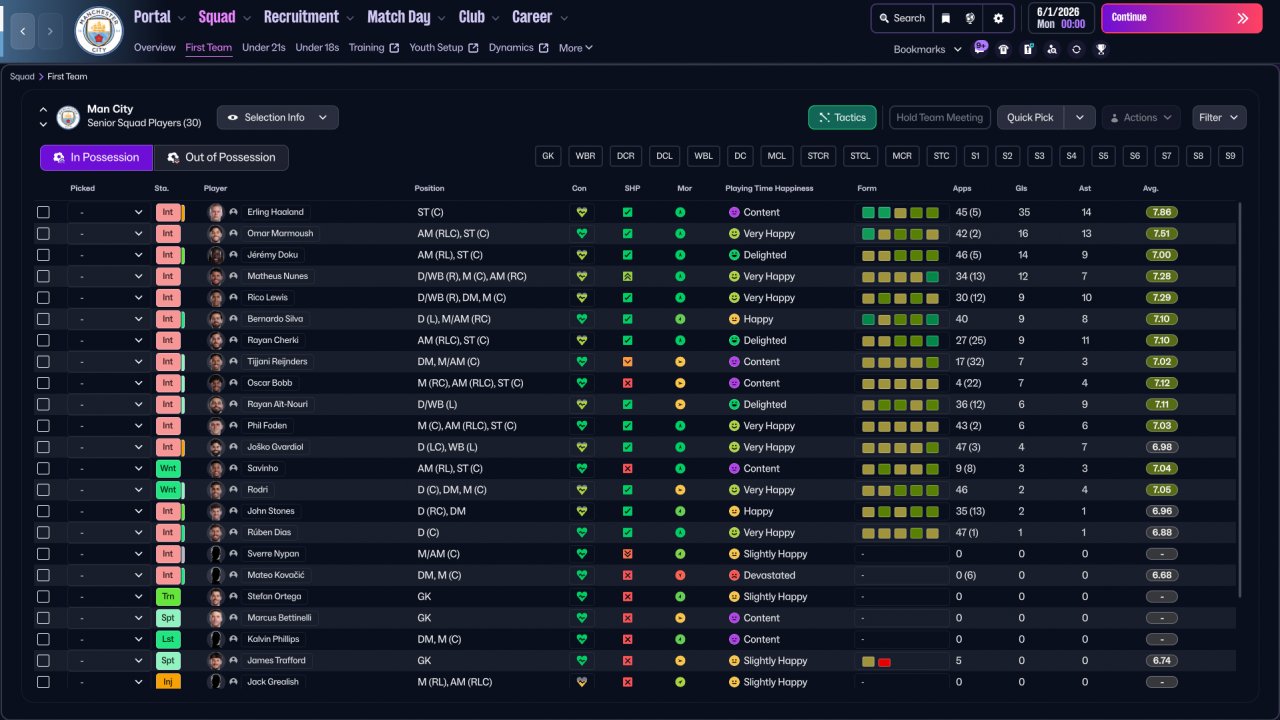 3-4-3 with 3 strikers in possession to 5-2-3 out of possession