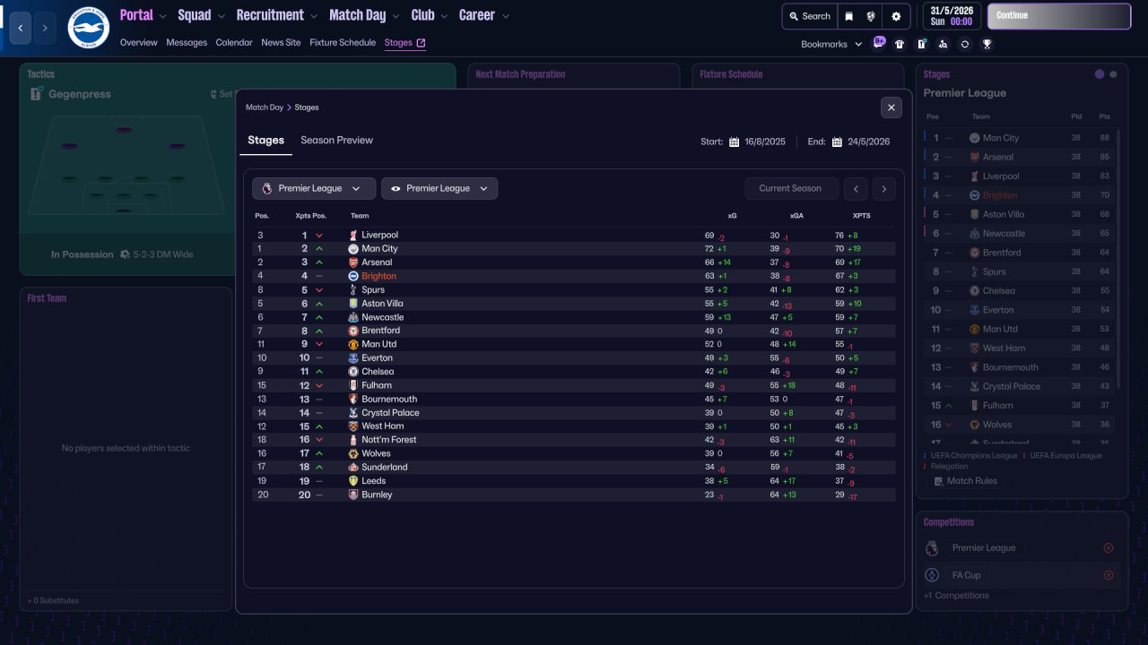 | xG Diff. | xG For | xG Against |