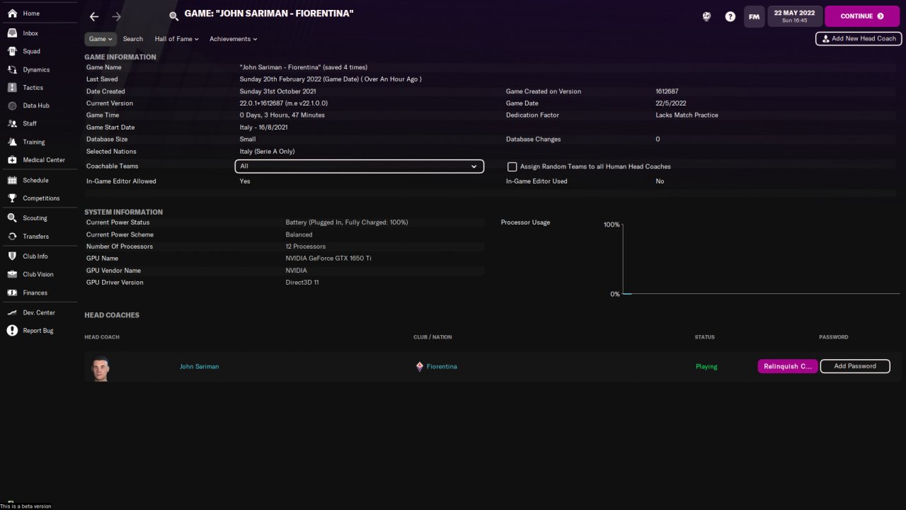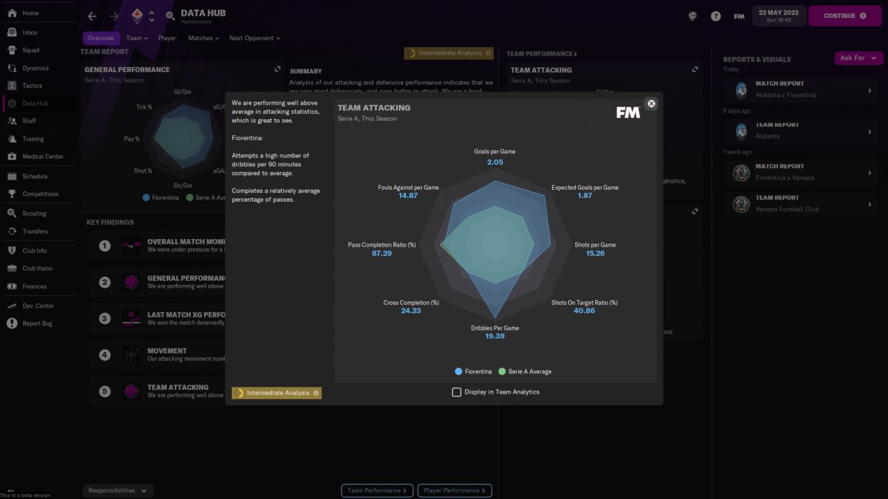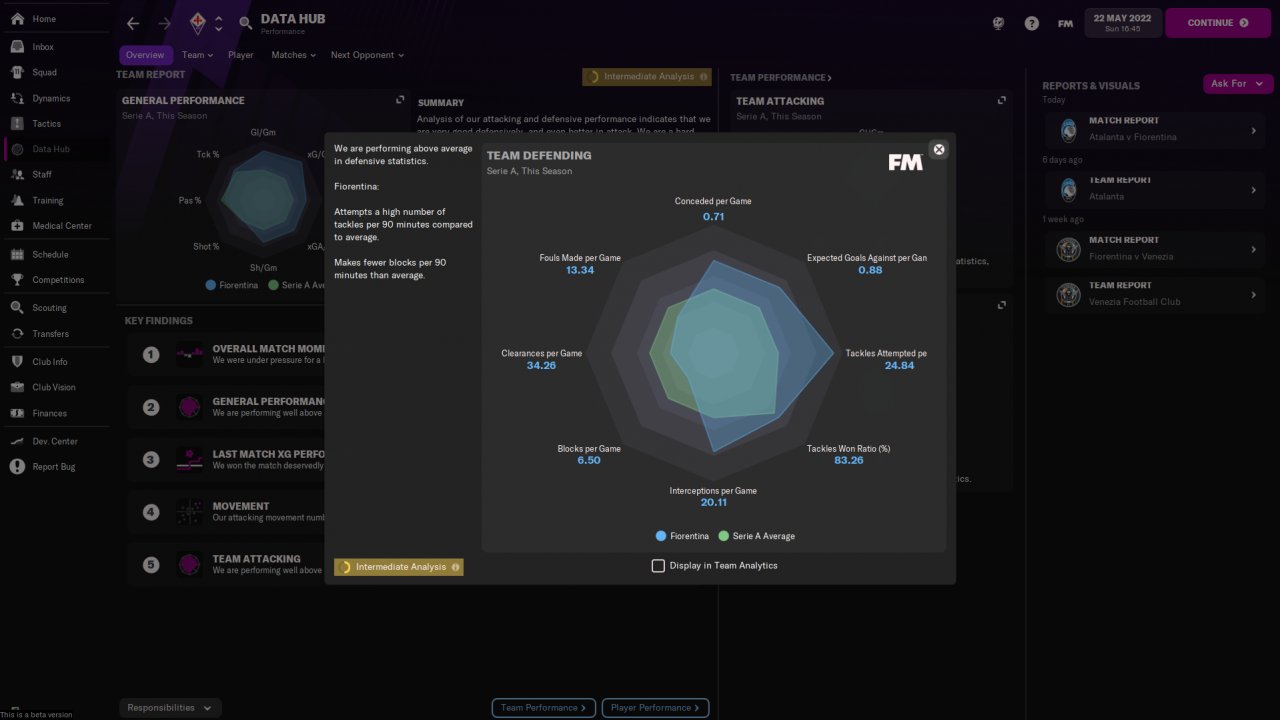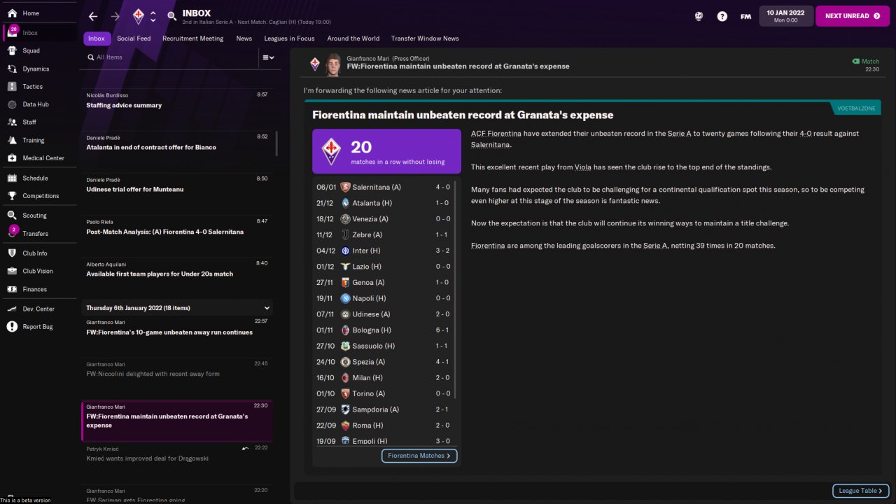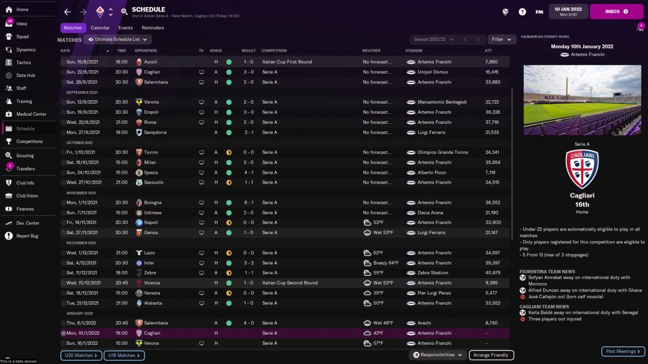here you see the best tactic for the beta! we started so well but in the end of the seasson team was tired.If you have a strongly forward like Vlahovic and speedy BPD you will score a lot and defence will be better. I decided to play with balance mentality but positive also going well. DW also worked very very good.This save with Fiorentina IS WITHOUT ANY TRANSFERS!!!Waitting your opinions!