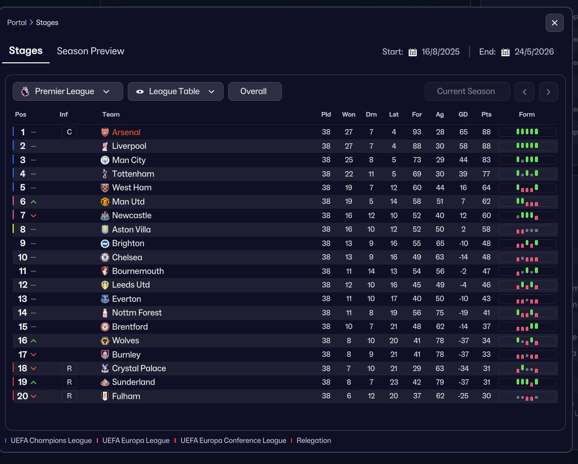 | xG Diff. | xG For | xG Against |