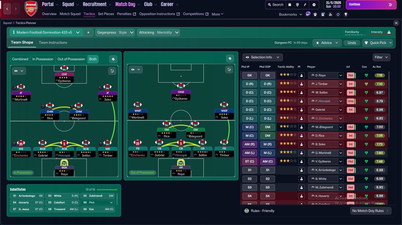WB moved to Fullbacks and the cam turned into an OAM OOP as well as some tweaks to player instructions etc.