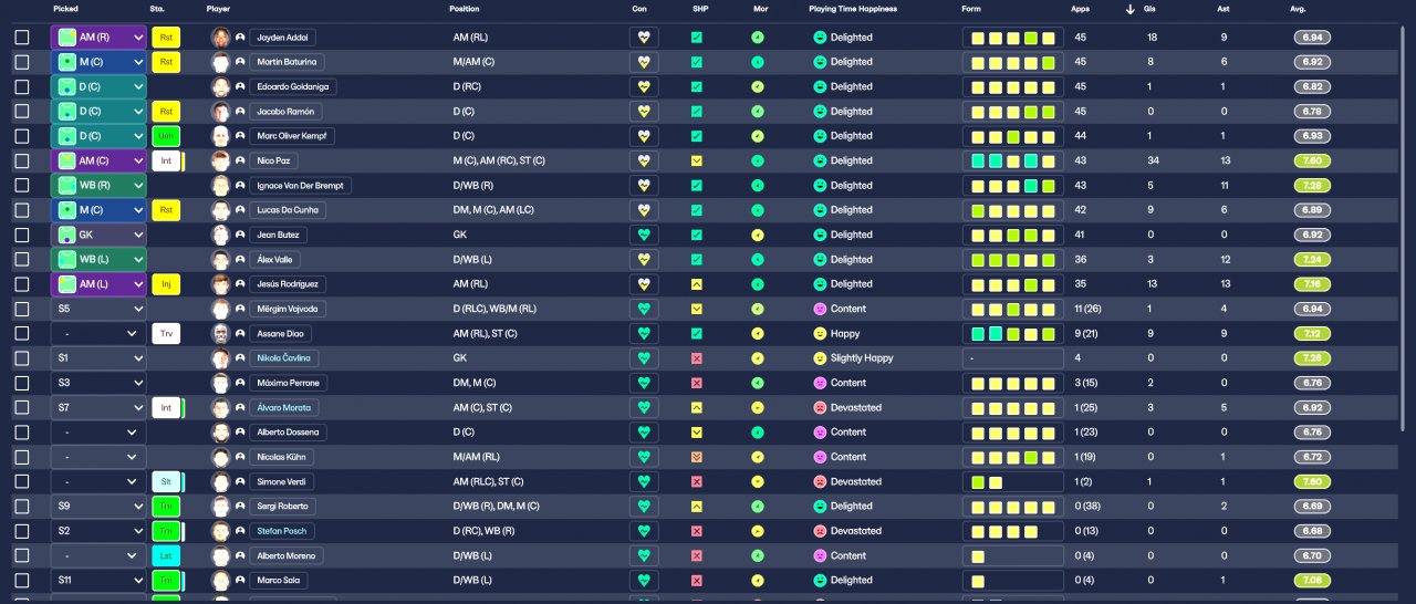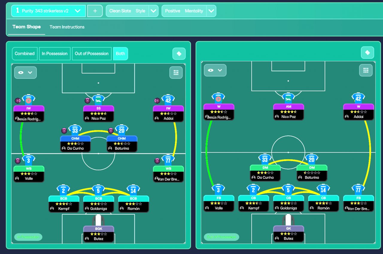 Changed players and team instructions
