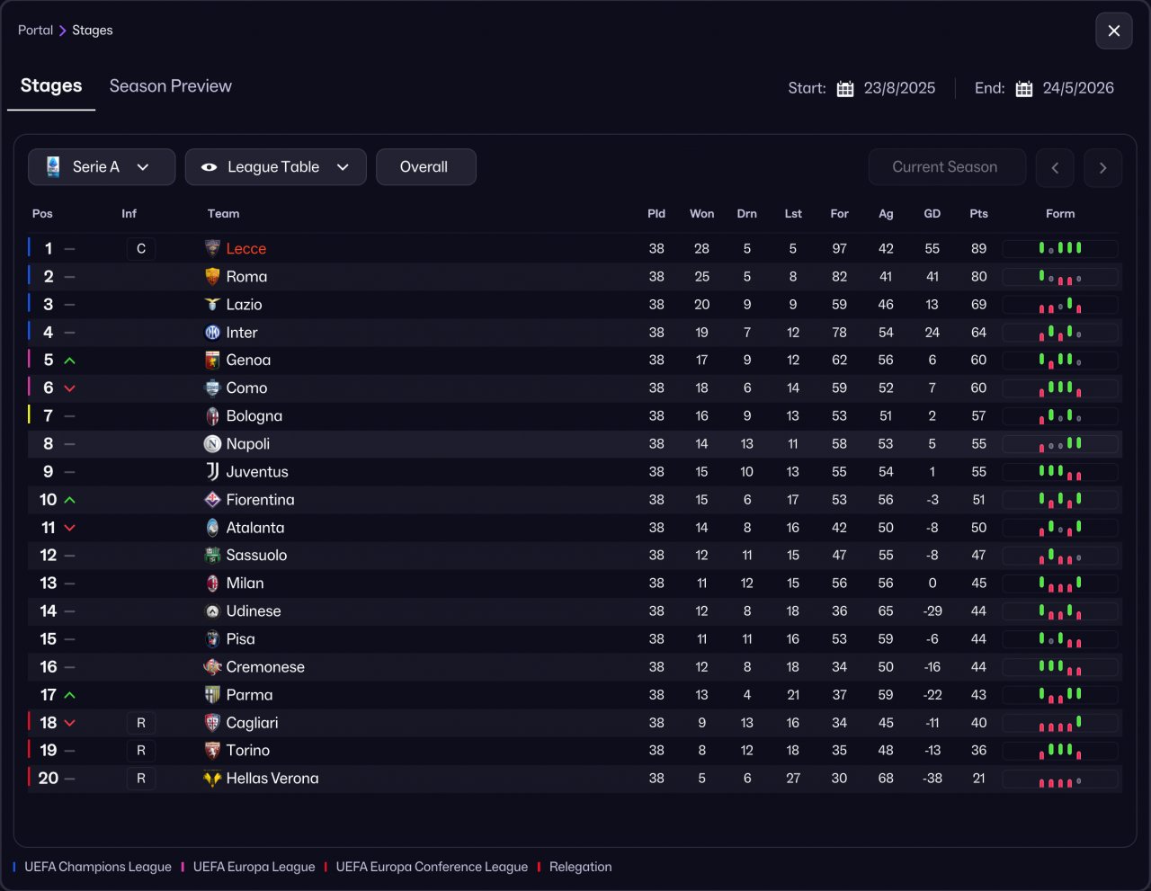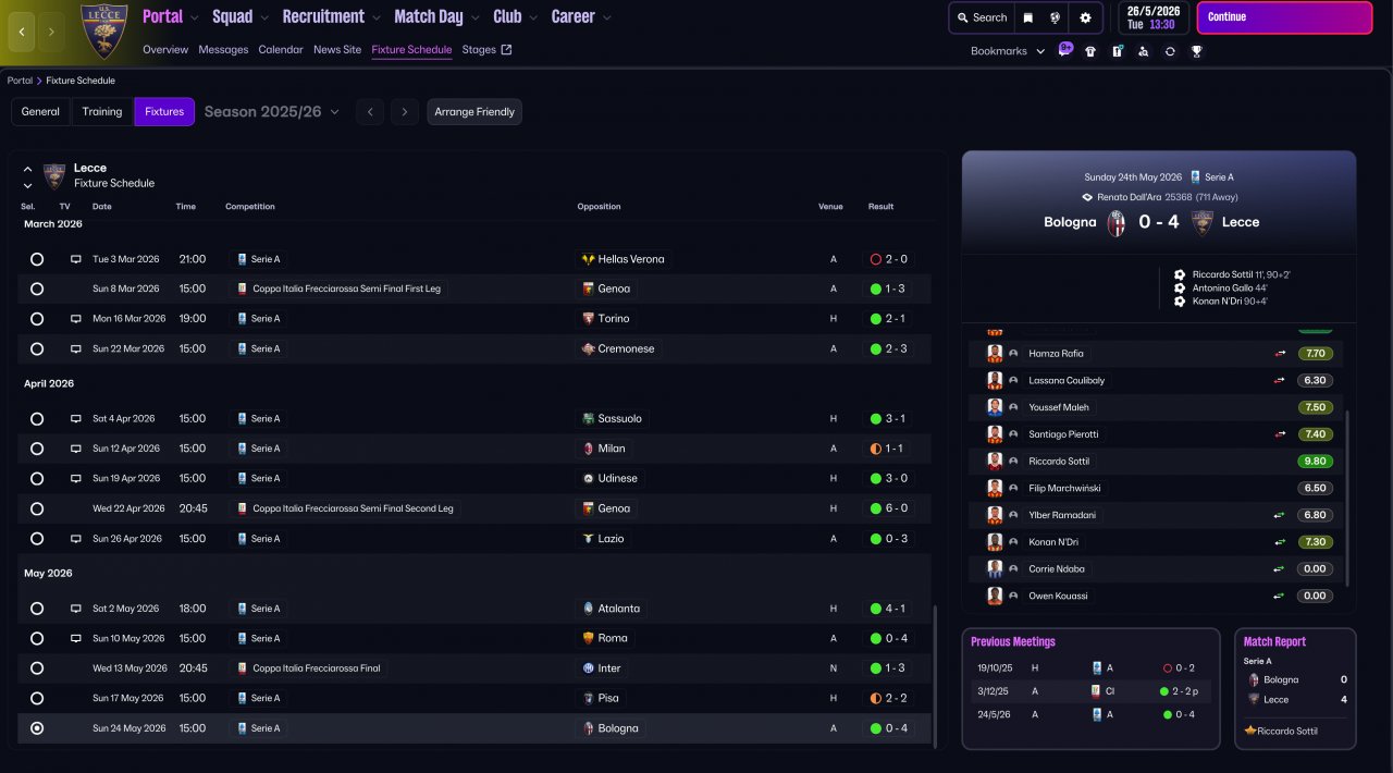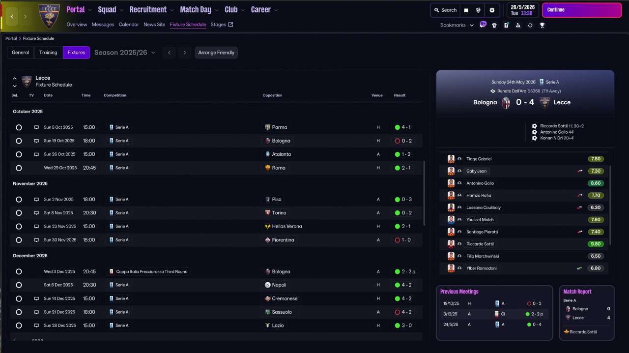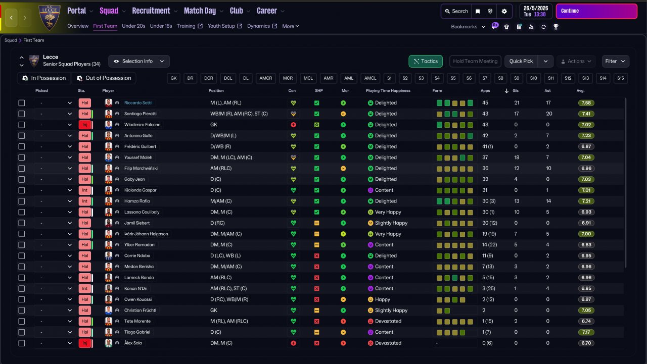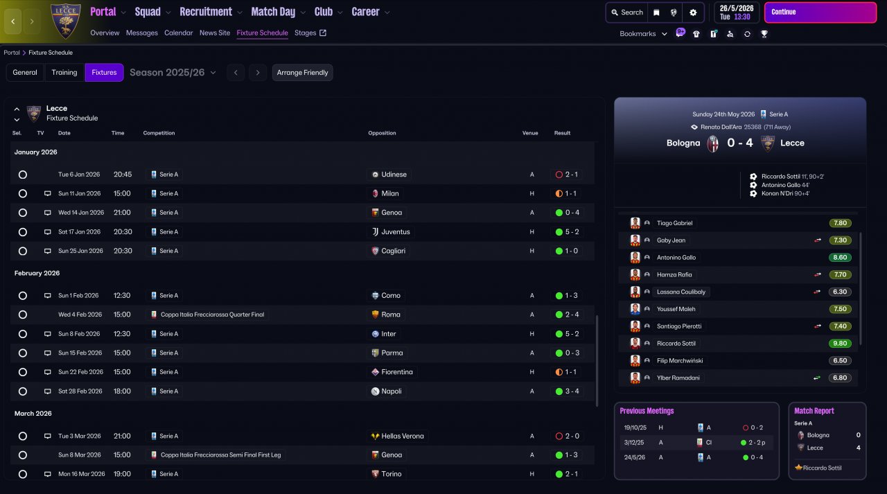Tested with Lecce (on Holiday) on the latest update (26.1.0). Somehow won both the Serie A & Coppa Italia