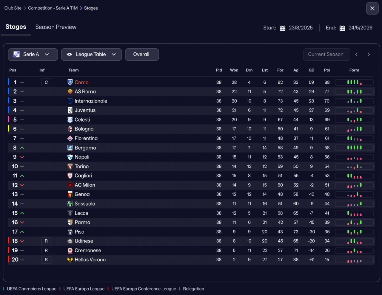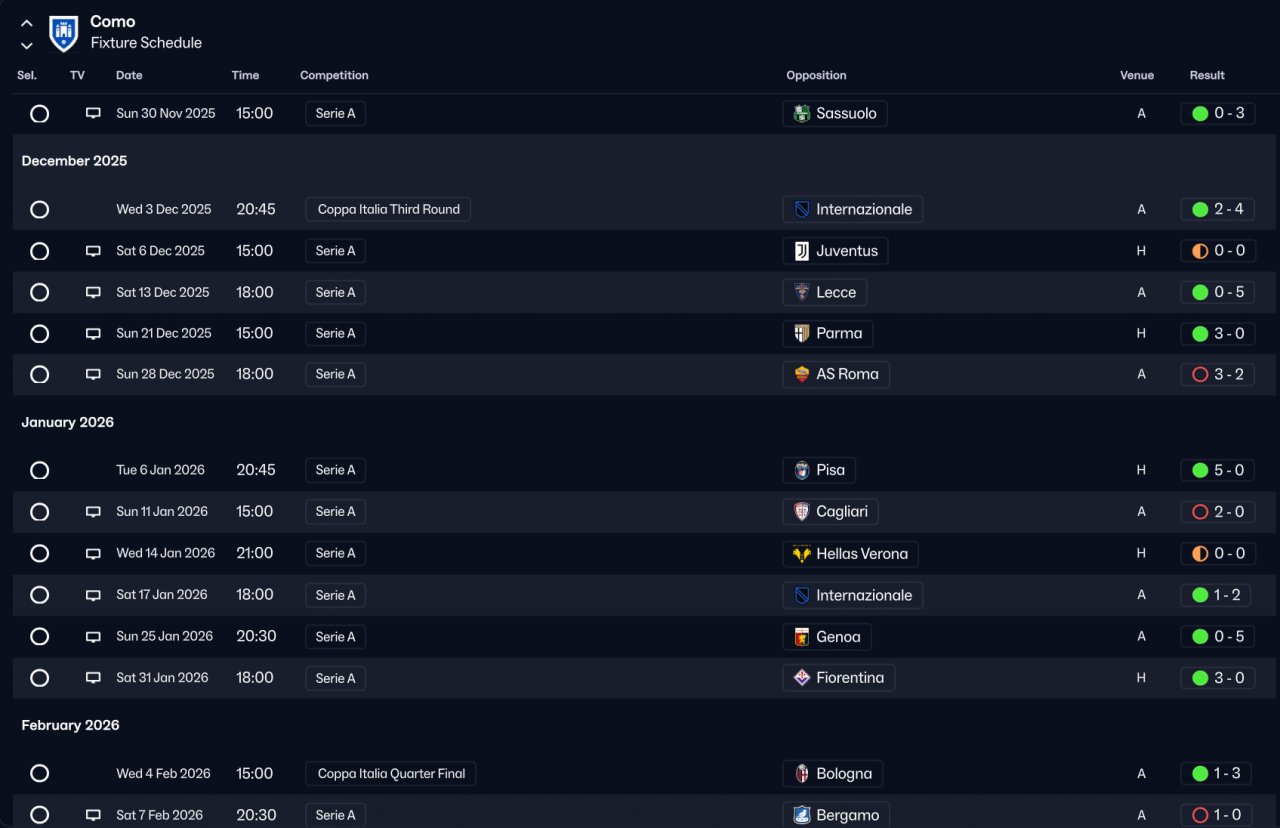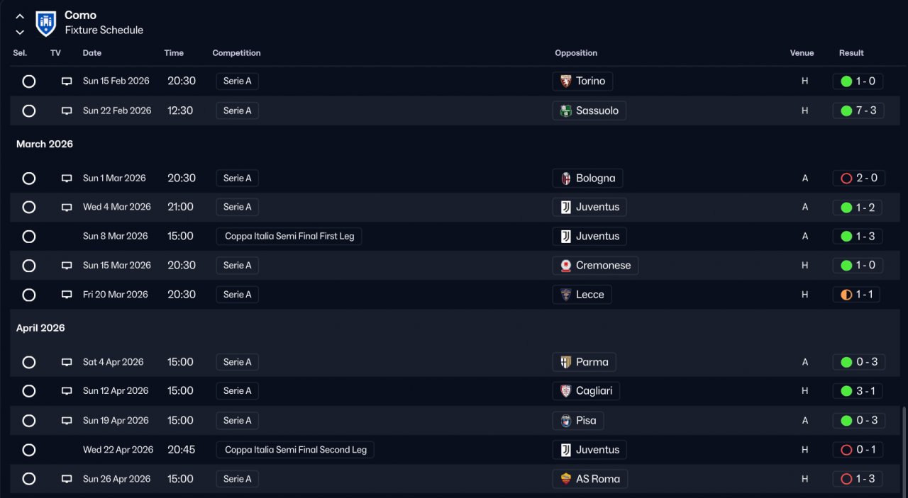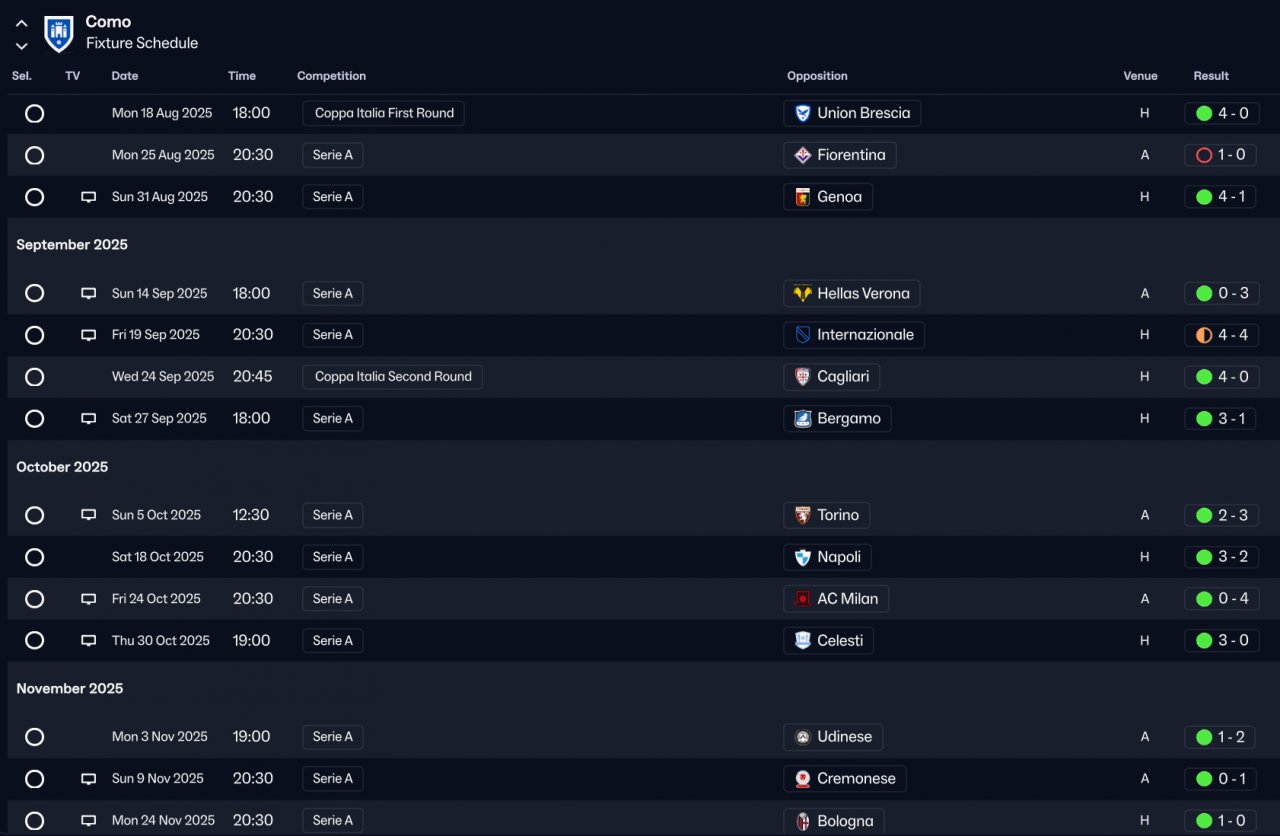 Como win Serie A and lost final cup