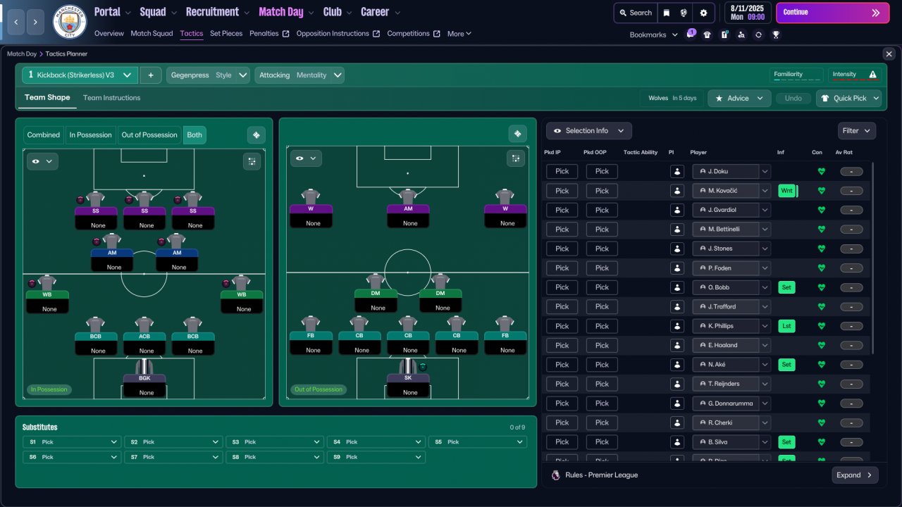 - Midfield 2 changed from channel midfielder to attacking midfielder