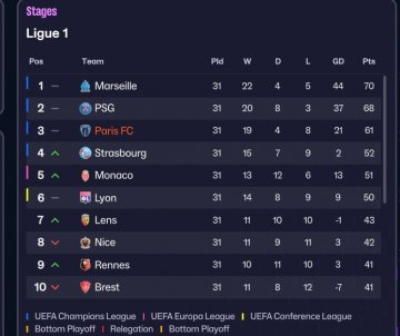 I cba completing the rest of the season on the Paris FC save after I found out my budget was only 5 mil for the next season but heres the league table after *most* of the season (pretty much gurantee I finished third position).