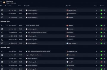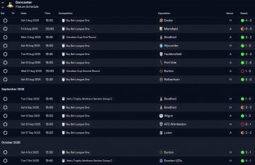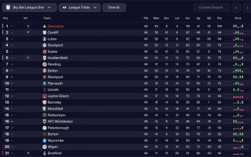 Tested with same 7 sides, no transfers and using holiday mode, with 5 wins, 1 second and Burnley finishing 5th and into Europe. I chose to show Doncaster this time. Predicted 19th and won the League well