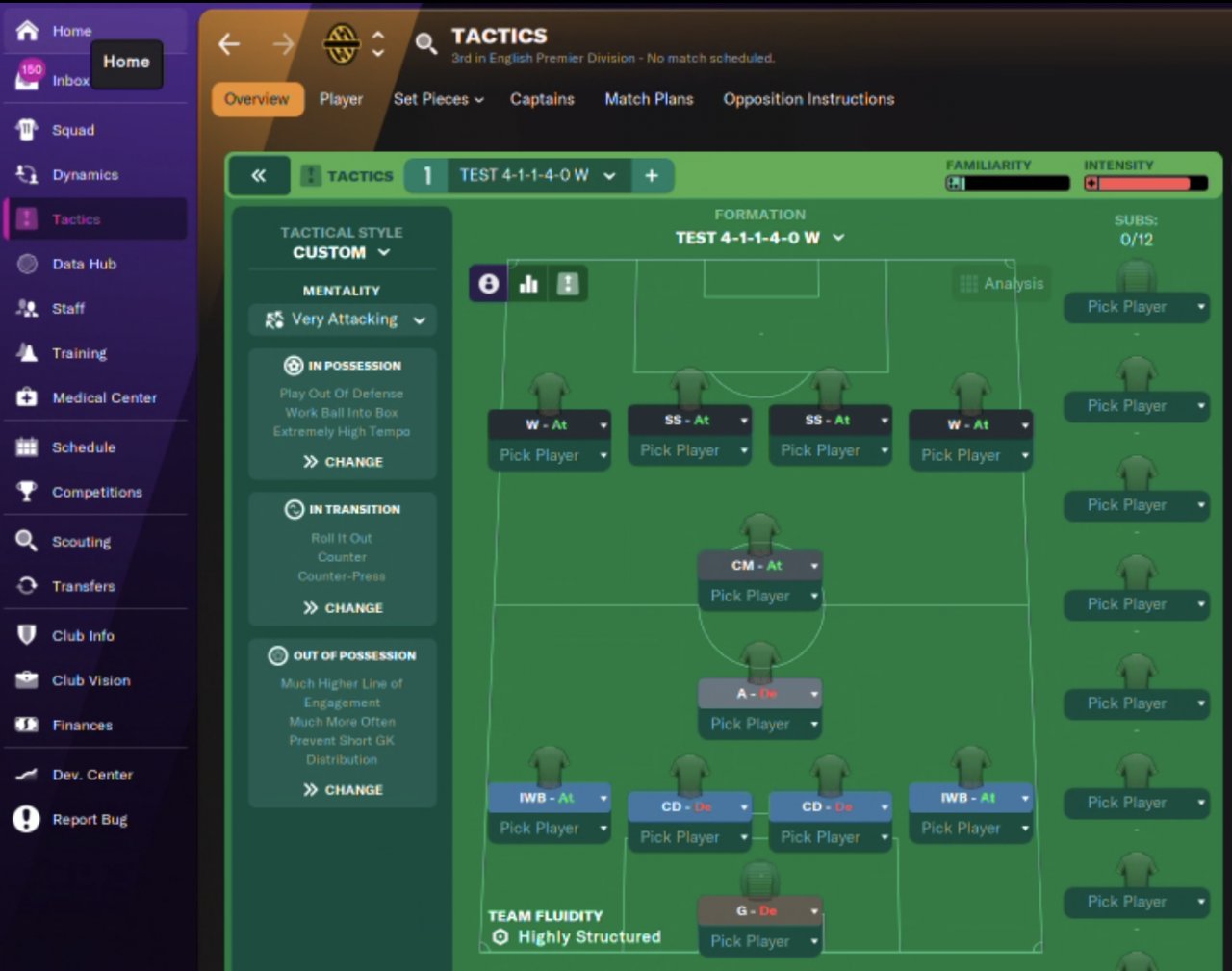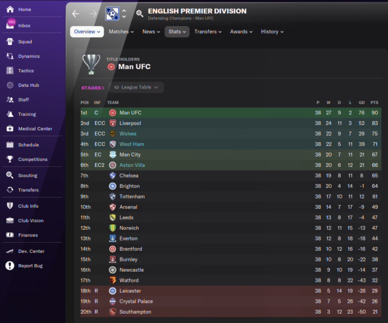 Tactic theory: Like many of us, I played a lot of strikerless on FM21, it's been difficult to recreate a shape and results, but this one has done it. While this result was holiday'd, I did look back at lots of goal highlights to get a sense of how it was scoring. Like everything else in FM22, it was crosses galore. Gone are the beautiful through-ball strikerless goals of the past. Now it's wide players finding late runs for easy headers and finishers with defenders sitting way too deep in the box.