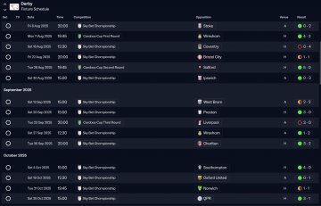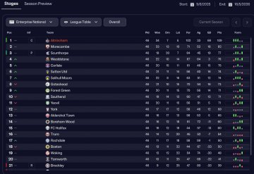 Used the same setup with 1 team in each of the top 7 English Leagues. I noticed all side fell away towards the end, but it was hard to field sides with this structure from the base squads. No transfers and tested on holiday. 3 teams won their Leagues with a 2nd, 3rd, 4th and Bburnley ran 8th.