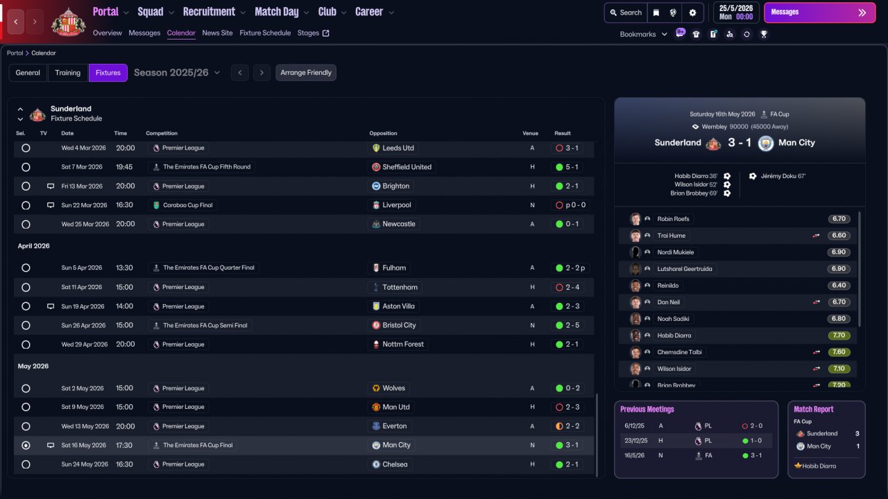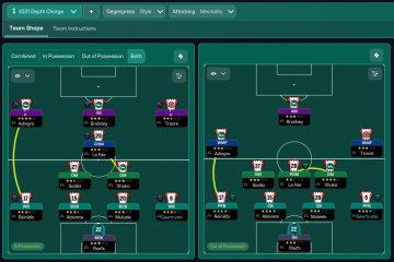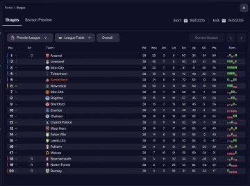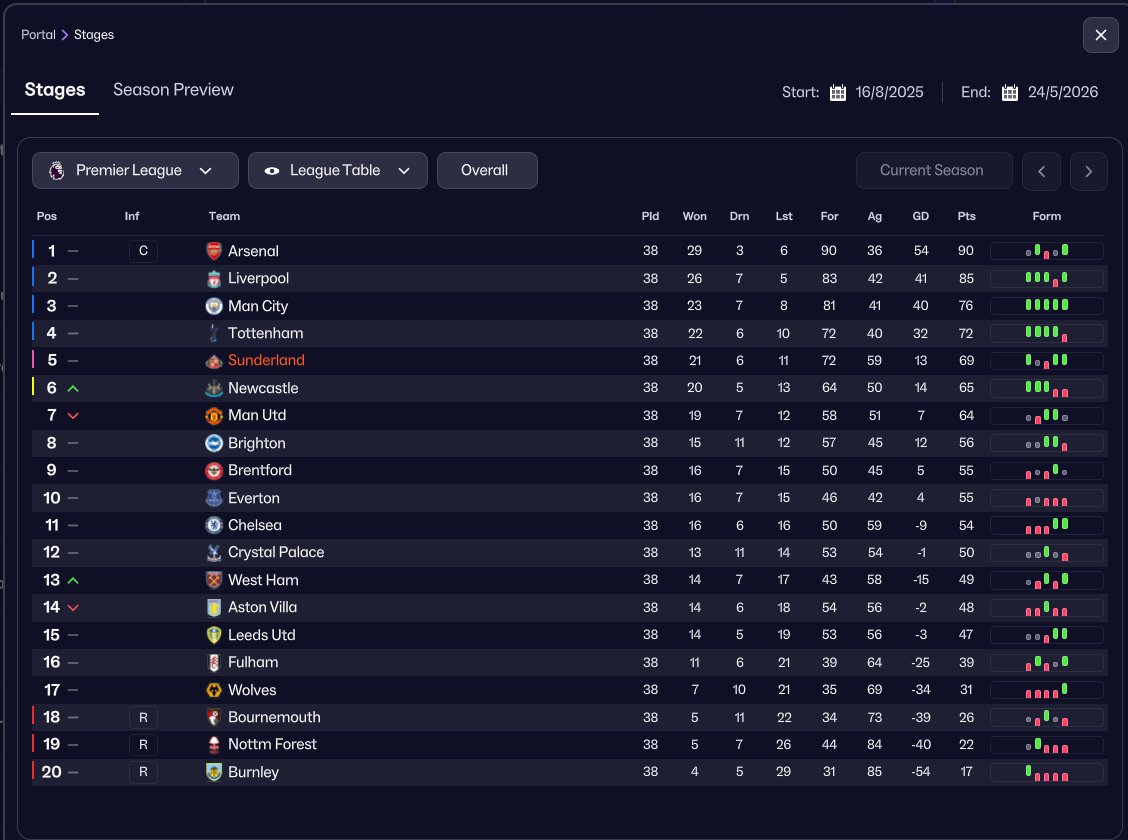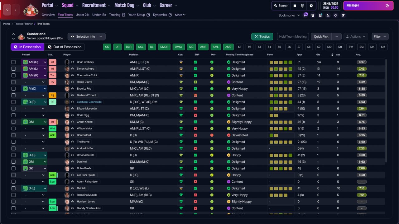 A classic 4-2-3-1 Gegenpress with the striker/AM shifted down both in and out of possession. Scores buckets but does concede a fair few too. Holiday tested with Sunderland, finished 5th in the PL and won the FA Cup in Season 1.