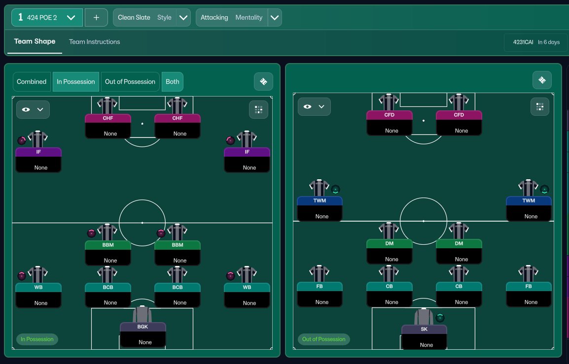 Sorry, I can't really offer much more advice. The three-defender strikerless formation is much better suited to this year's tactics engine. By contrast, formations with two center-backs tend to perform noticeably worse—especially those that include an out-and-out striker.My English isn't great either, so I have to rely on web translation.