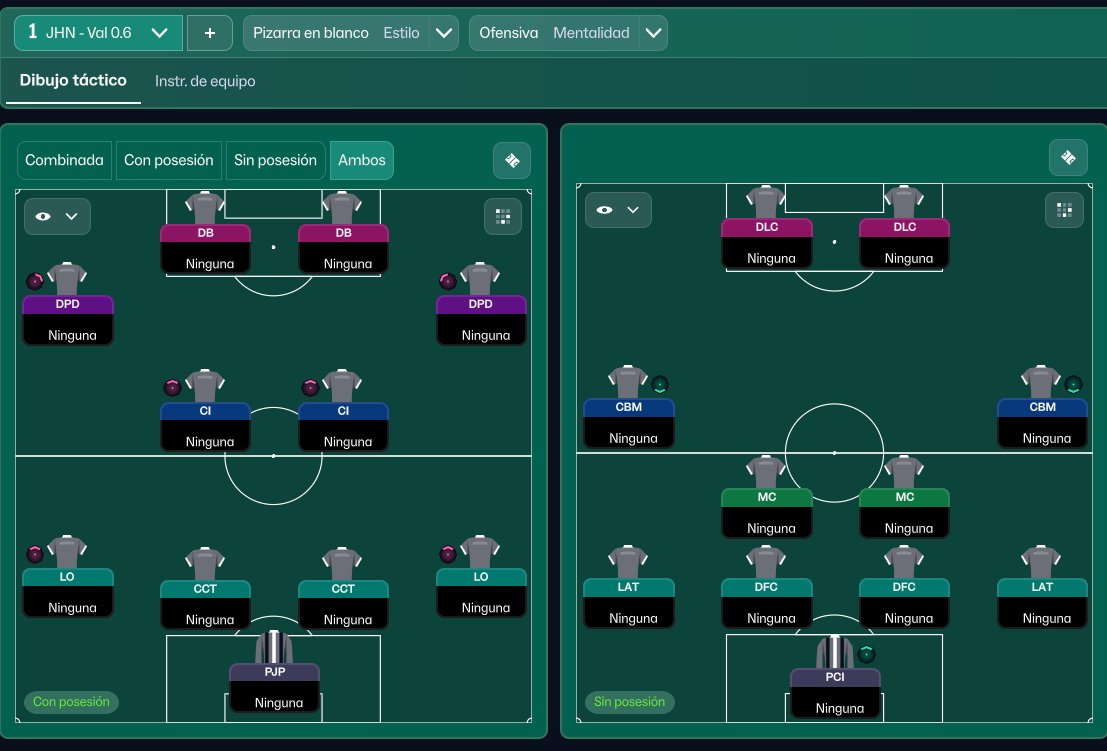 He cogido la V0.2 y le he cambiado los extremos por delanteros escorador por dentro y los laterales defensivos por laterales ofensivos, tambien he bajado la linea de presion