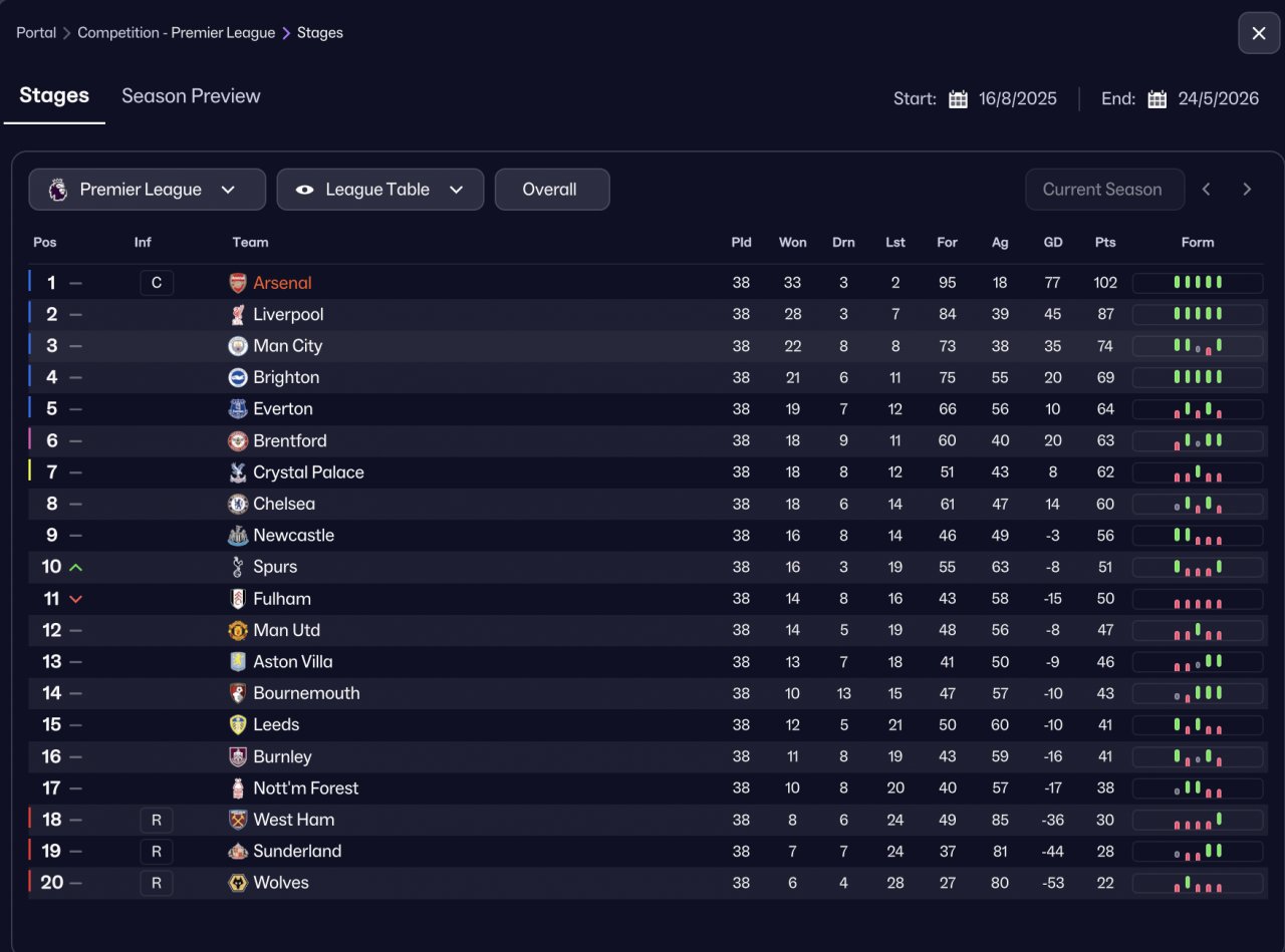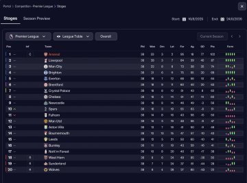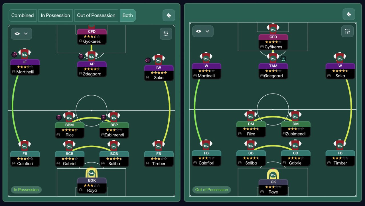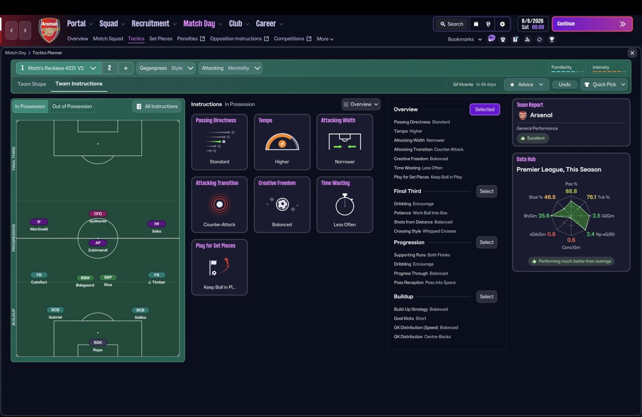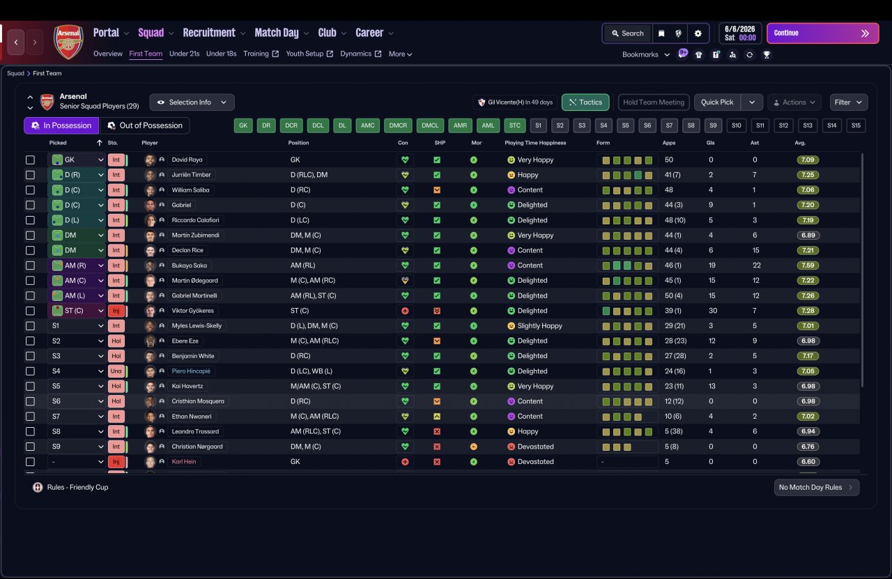 As I continued refining the tactic, I decided to properly stress-test it by switching to a completely vanilla Arsenal squad and simming an entire season with zero in-season changes — no tweaks, no opposition instructions, and no mid-season balancing.
