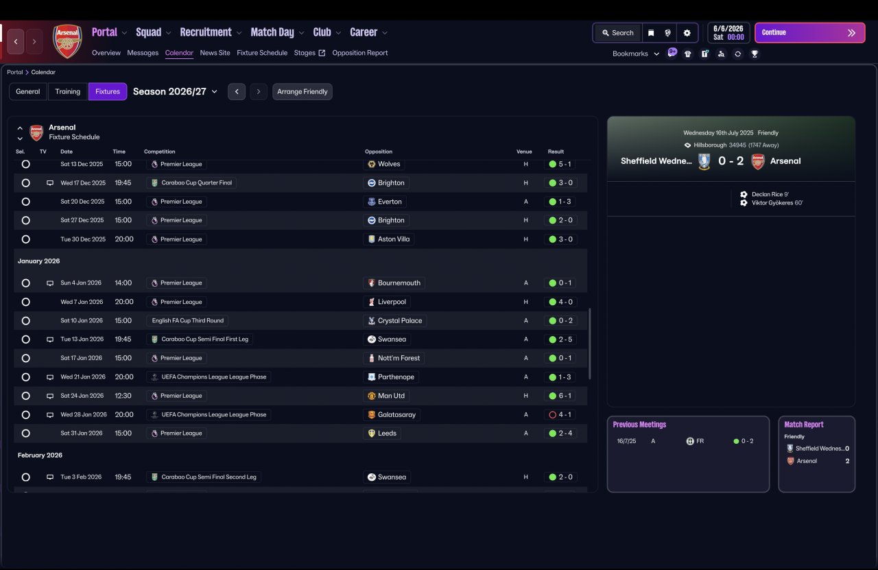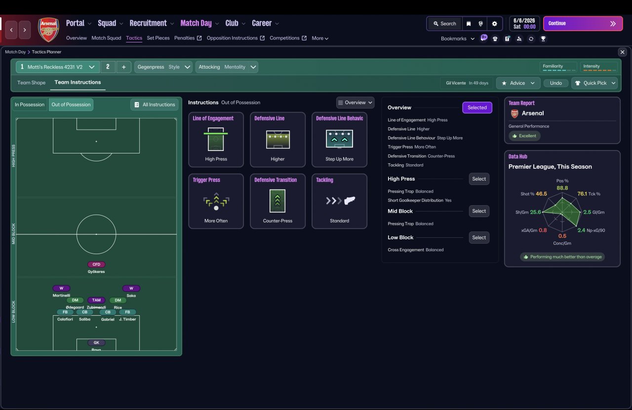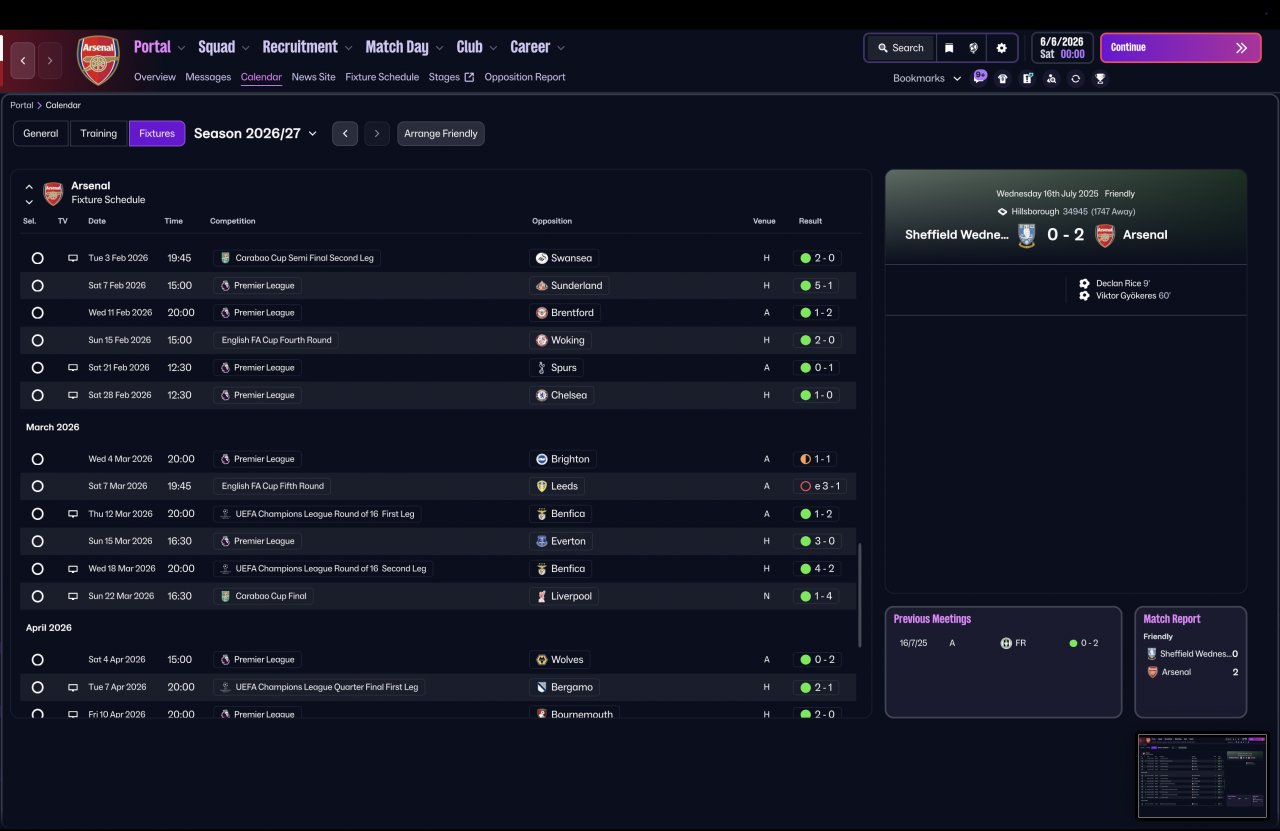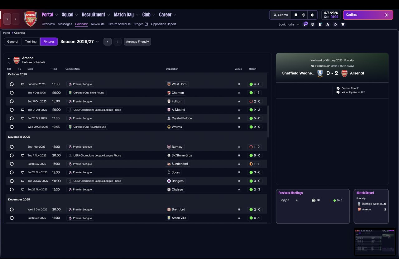 As I continued refining the tactic, I decided to properly stress-test it by switching to a completely vanilla Arsenal squad and simming an entire season with zero in-season changes — no tweaks, no opposition instructions, and no mid-season balancing.