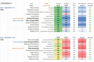 This time, only one tactic was used to measure the result, which may not fully reflect the intensity, but it can be roughly referred to Note: The "strength" of the coach (whether it is good for the game engine) has nothing to do with the "strength" of the players at all. Strong players can also be paired with weak coaches