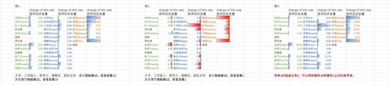 Table 1 Change this attribute to 18, the change value of the win rate