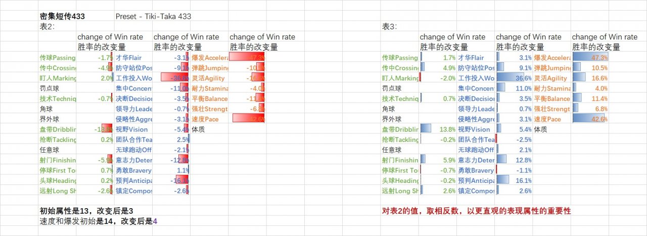 3.non Gegenpress , Preset - Tiki-Taka 433 In the test The initial value of all attributes is 13