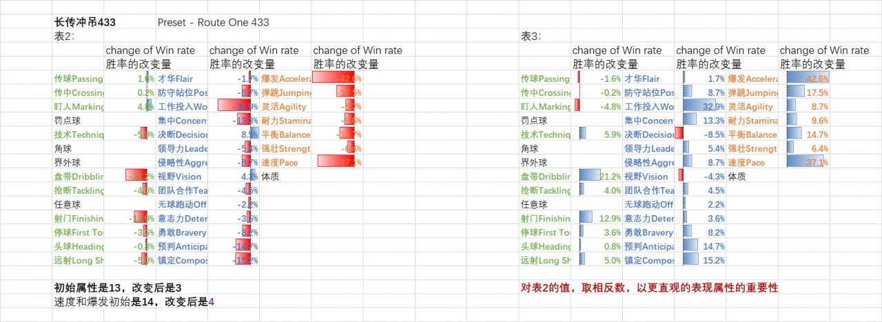 5.non Gegenpress , Preset - Route One 433 In the test The initial value of all attributes is 13