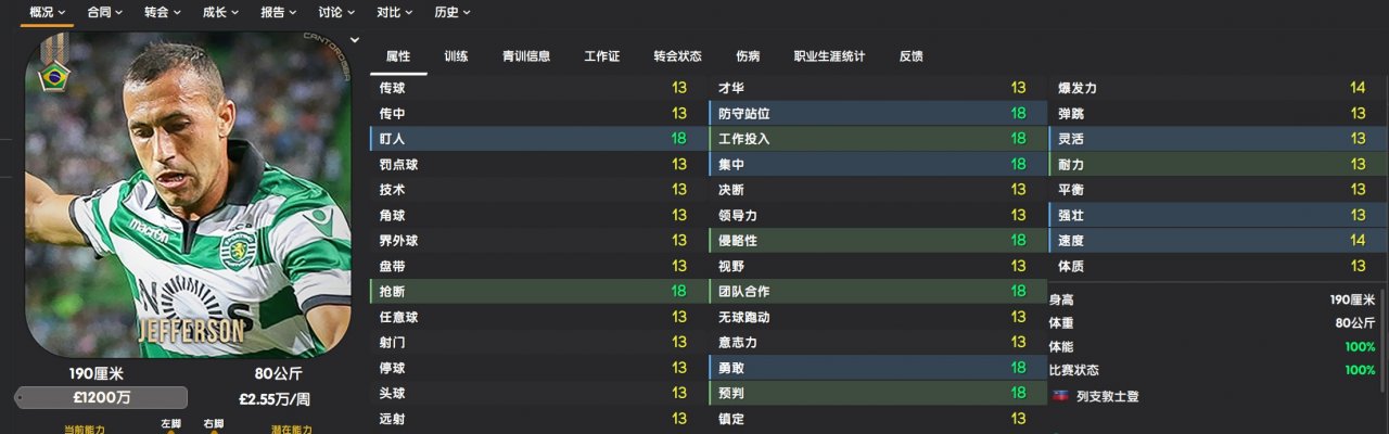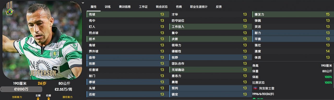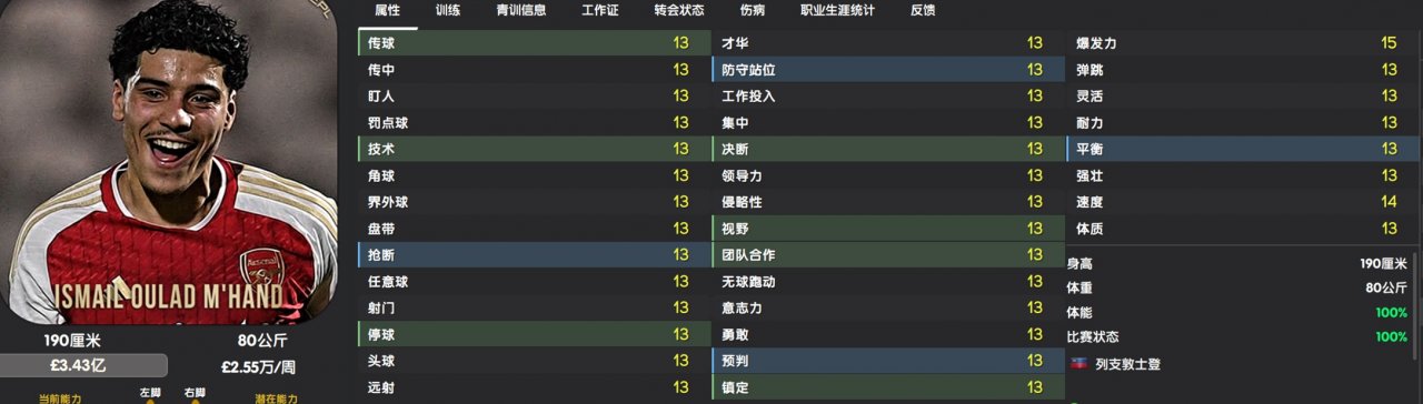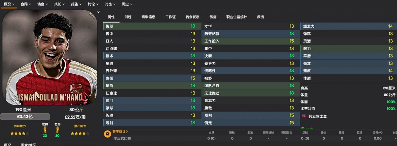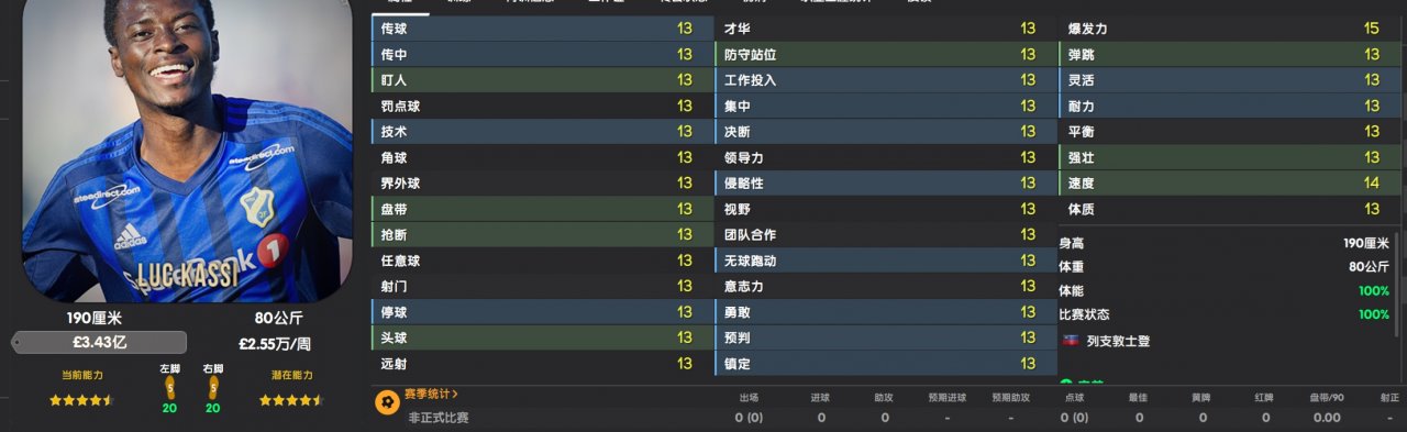 According to the game's rating, he is already a five-star top league player. If you look at the key attributes in the game, you would think he is very strong. These enhancements cost him approximately 30 to 40 CA points more