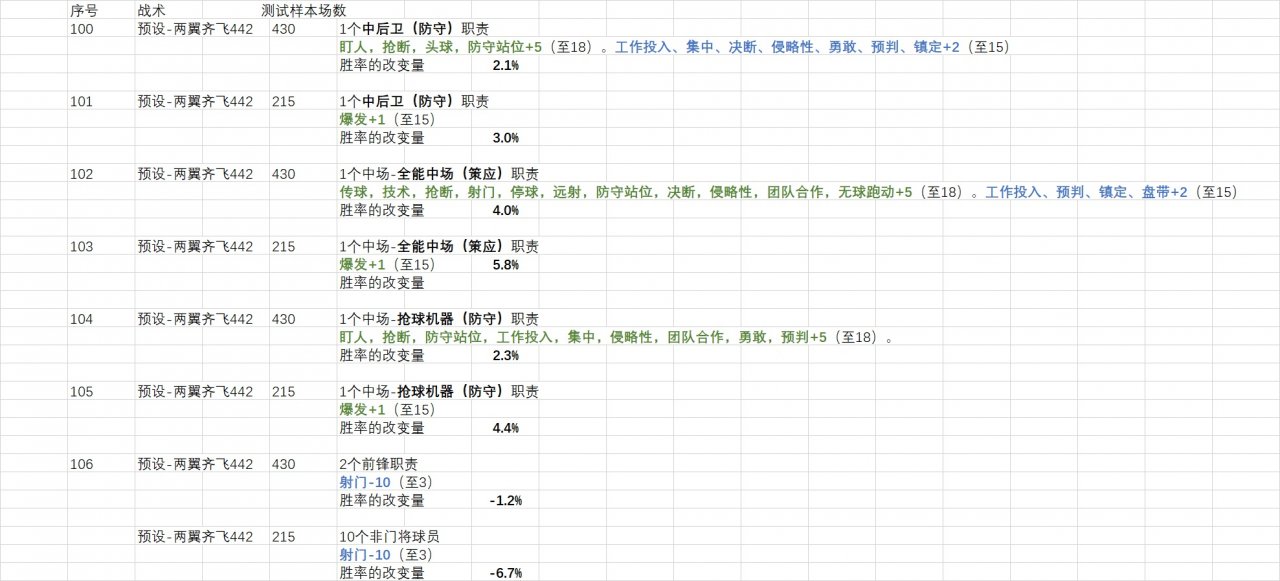 9."Position/Role/Duty" "Key Attributes" Next, do some tests based on Preset Wing Play 442