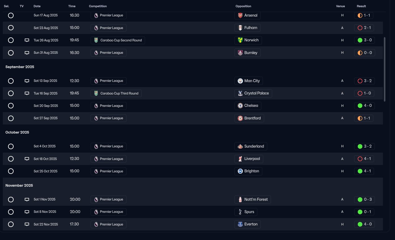 | xG Diff. | xG For | xG Against |