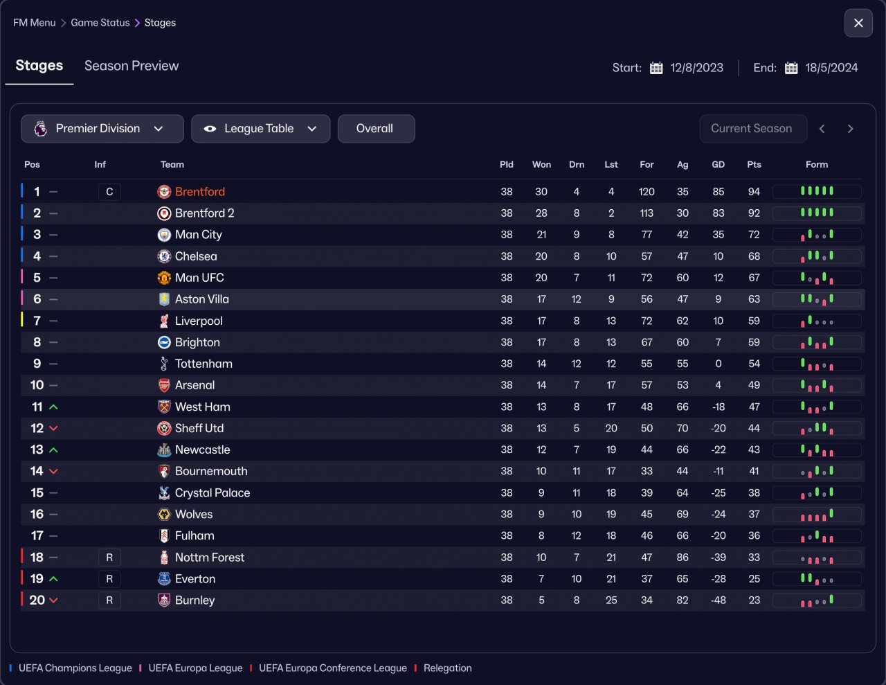 | PTS | GD | GF | GA | PLD |