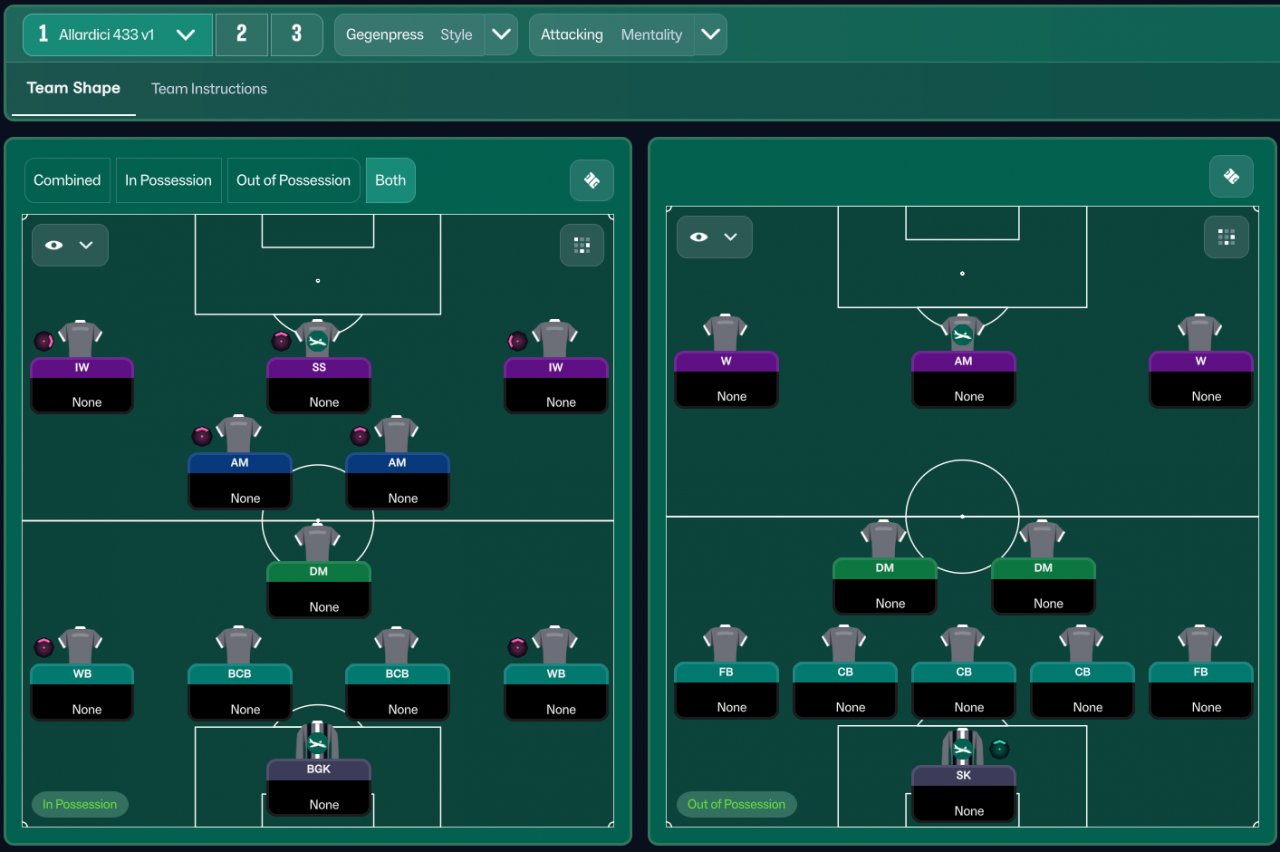 Allardici 433 v1, using a 433 in possession and the much loved 523 out of possession, TIs and PIs are pretty much the same as the top tactics
