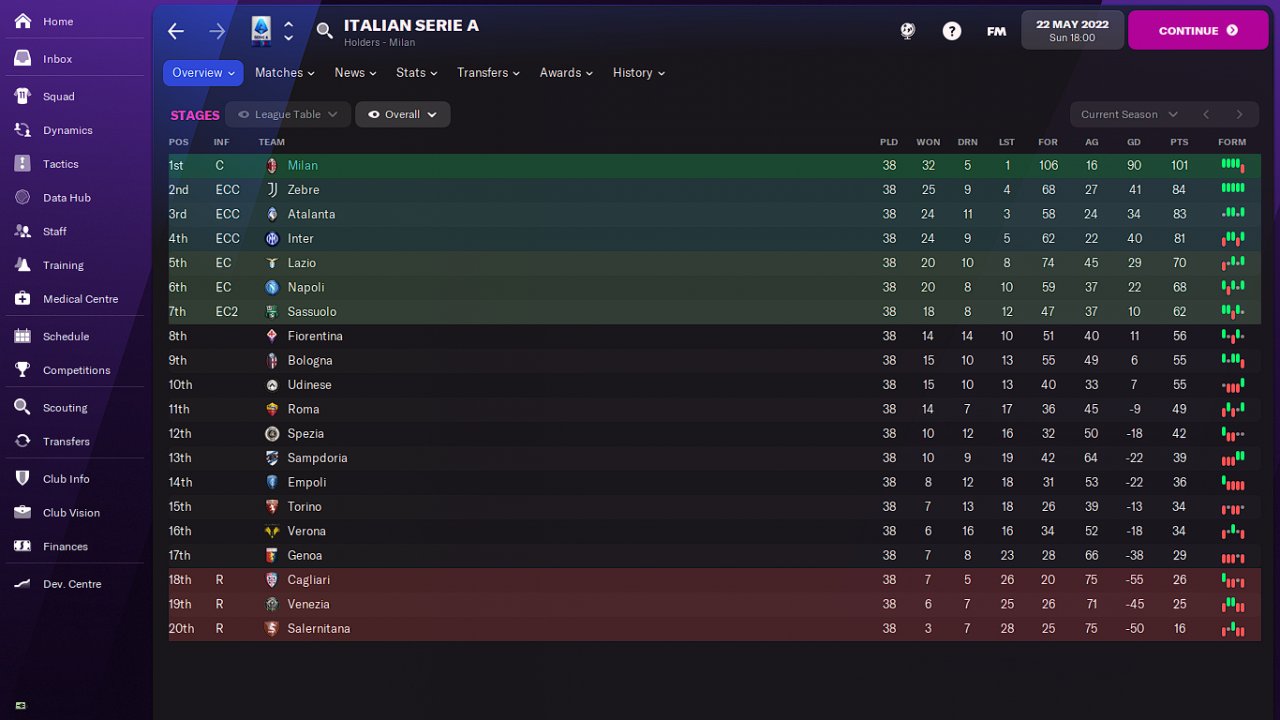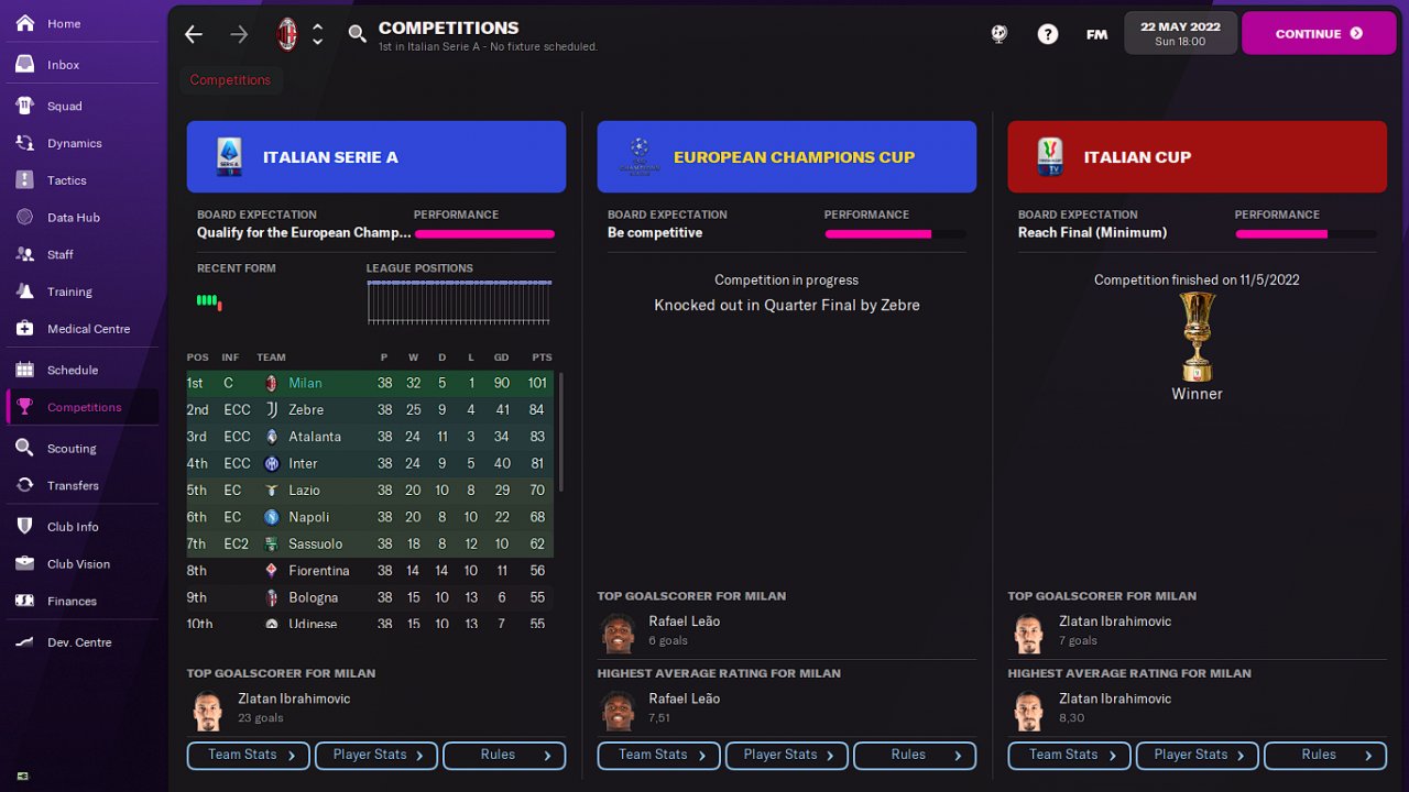 Hi everyone, here is my tactic for FM 2022 that won me the double, Italian Serie A and Italian cup during my first season with AC Milan with 101 points, 106 goals scored and only 16 conceded in the Serie A.