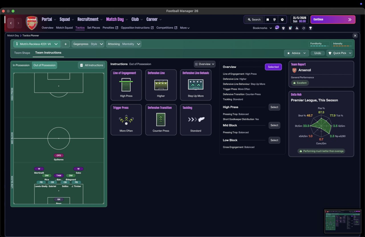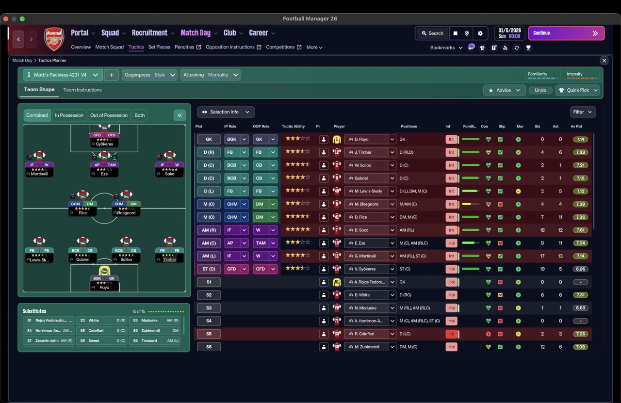 Tested again using a completely vanilla Arsenal squad, the tweak proved effective across a full league campaign, retaining the reckless edge while adding an extra layer of attacking volume.