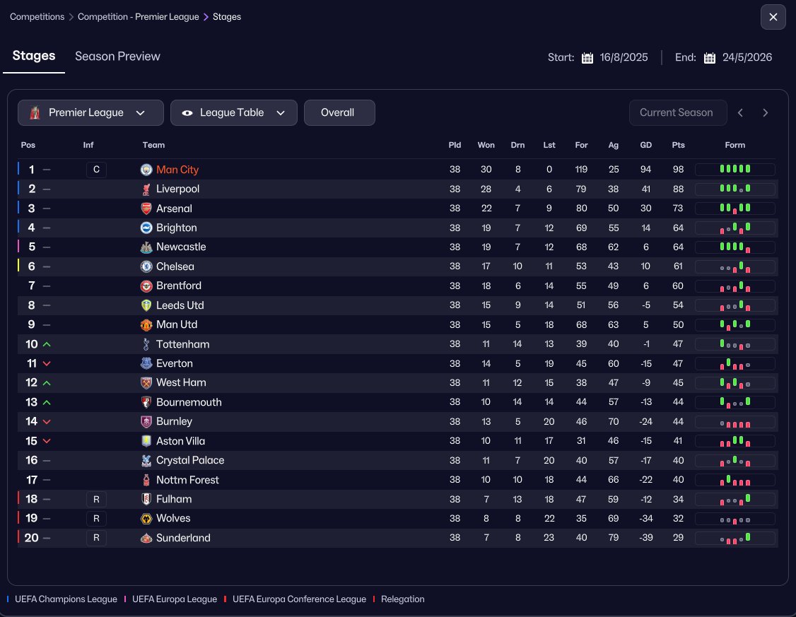 | xG Diff. | xG For | xG Against |