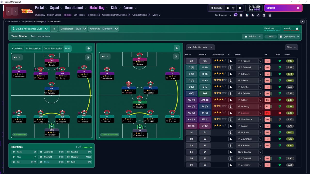 My double MP to xmas tactic but put a 433 on deffensive. By far the best results ive got on a tactic with striker, not sure if its rng or really good.