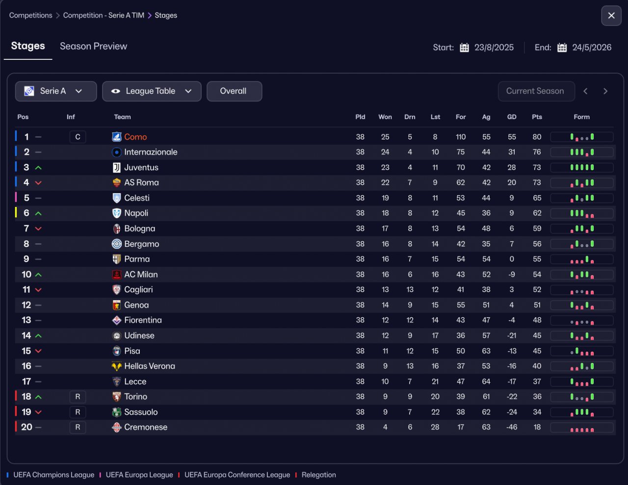 Won Serie A with Como