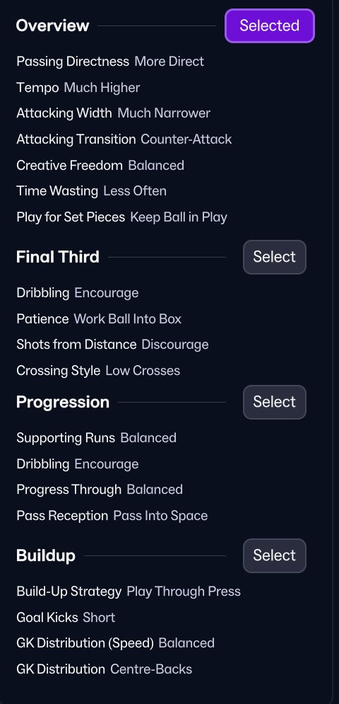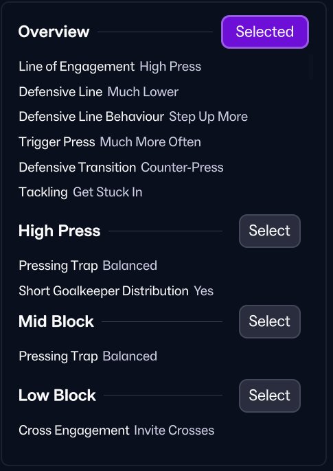 This makes the tactic suitable for both mid-table teams seeking stability and stronger sides looking for control without sacrificing realism with strikeless tactics.