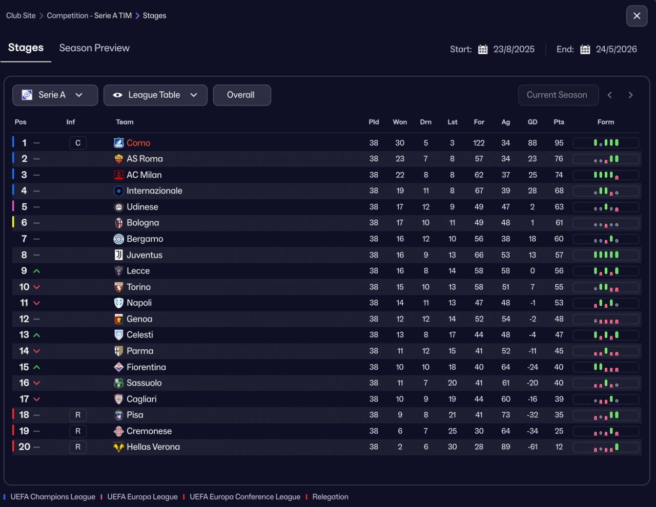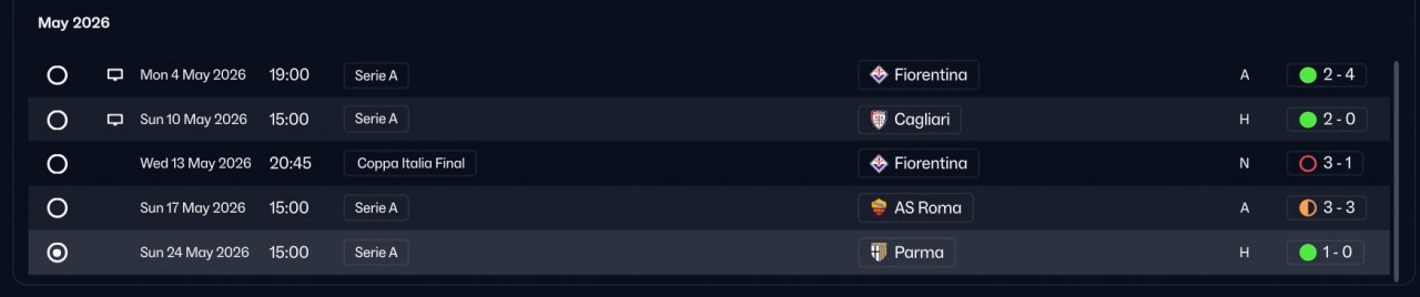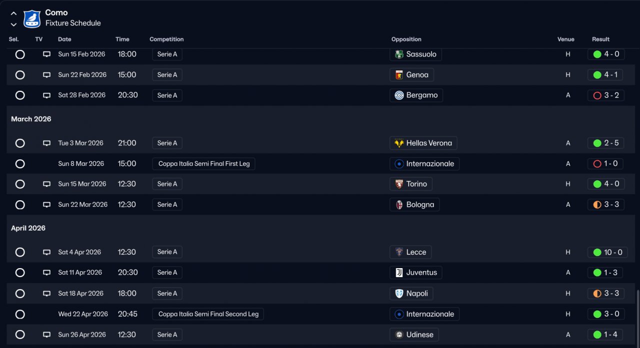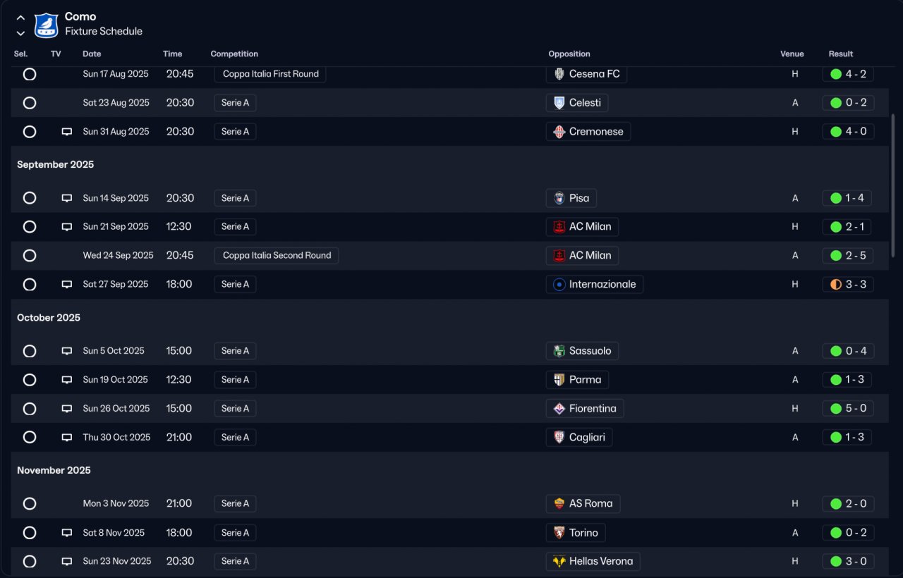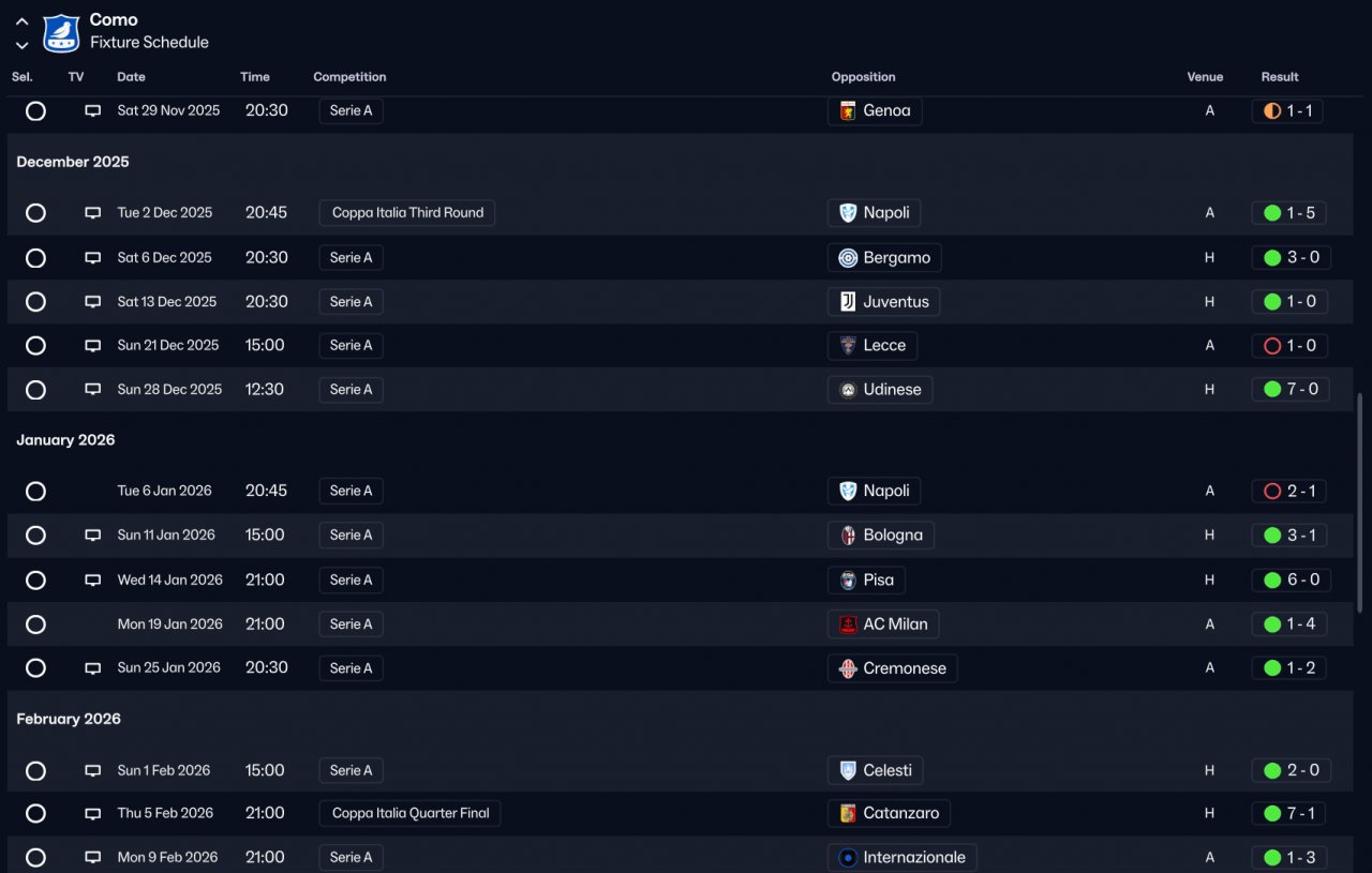 Won Serie A 120+ Goal with Como, Lost final cup,